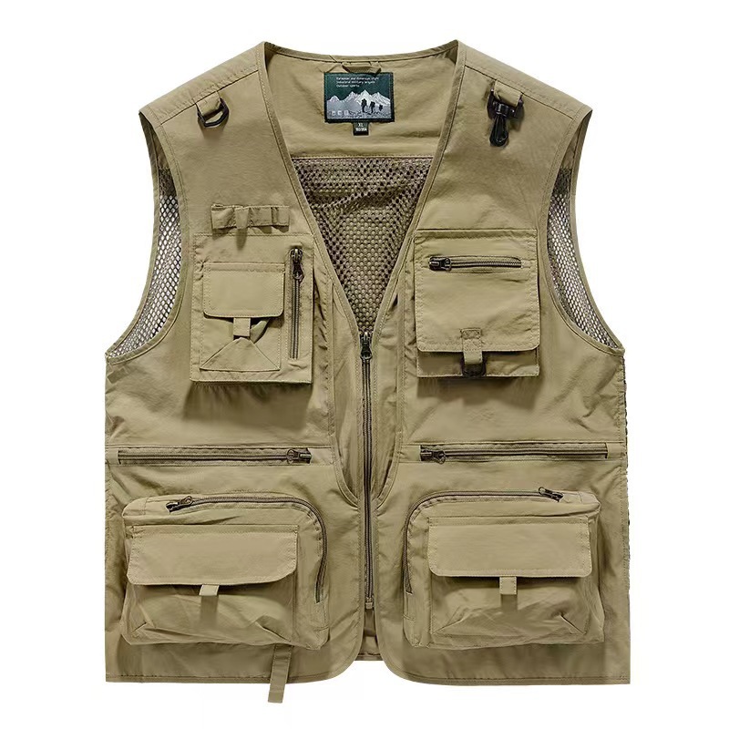 멀티 포켓 작업 옷 조끼 인쇄 로고 야외 등산 사진 낚시 옷 느슨한 민소매 조끼 남성 조끼