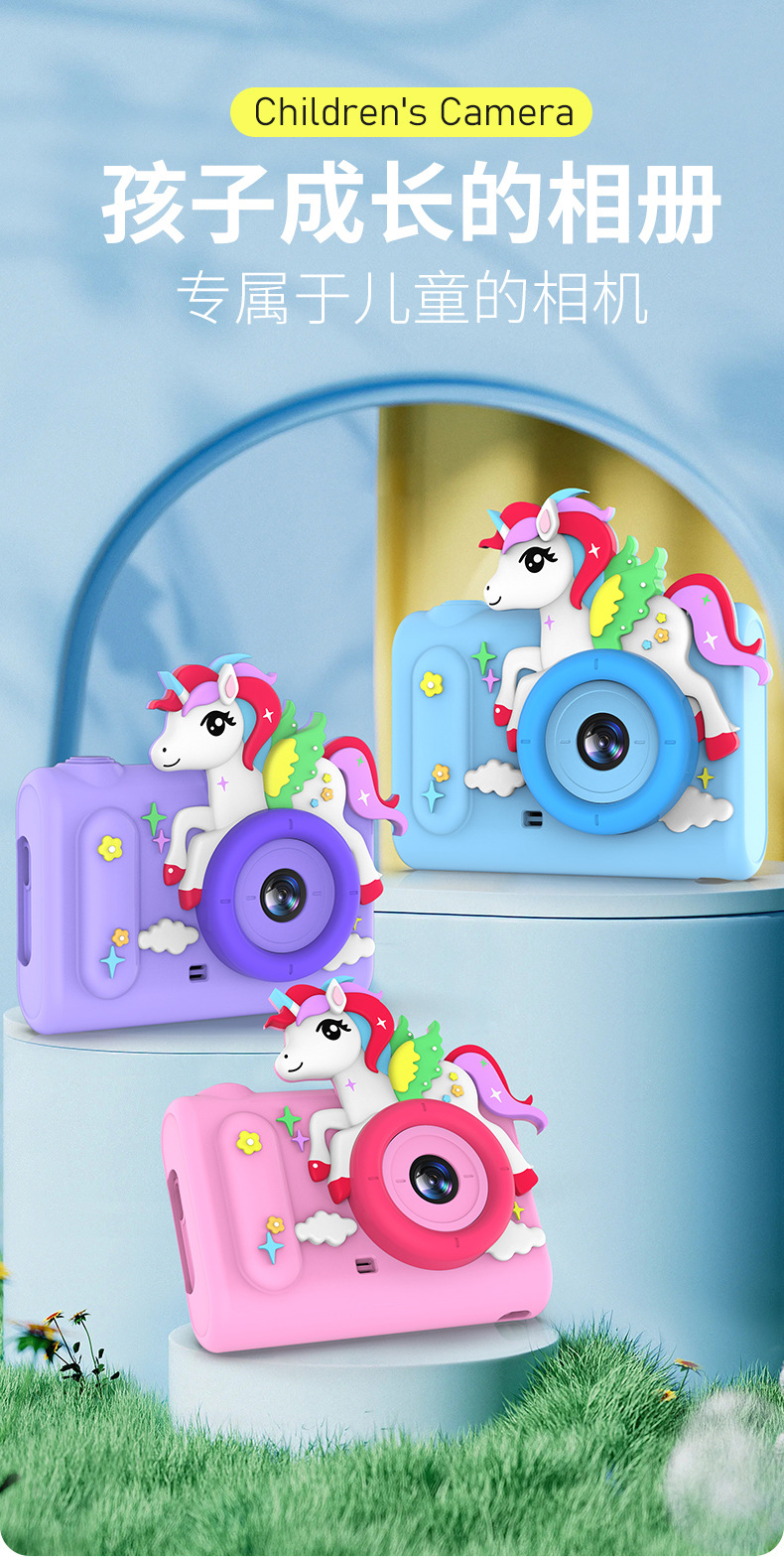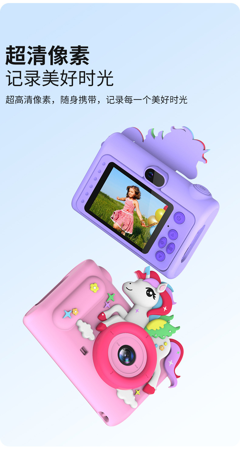 새로운 유니콘 미니 카메라 어린이 HD 픽셀 카메라 만화 보호 커버 장난감 카메라 어린이스토어 가기