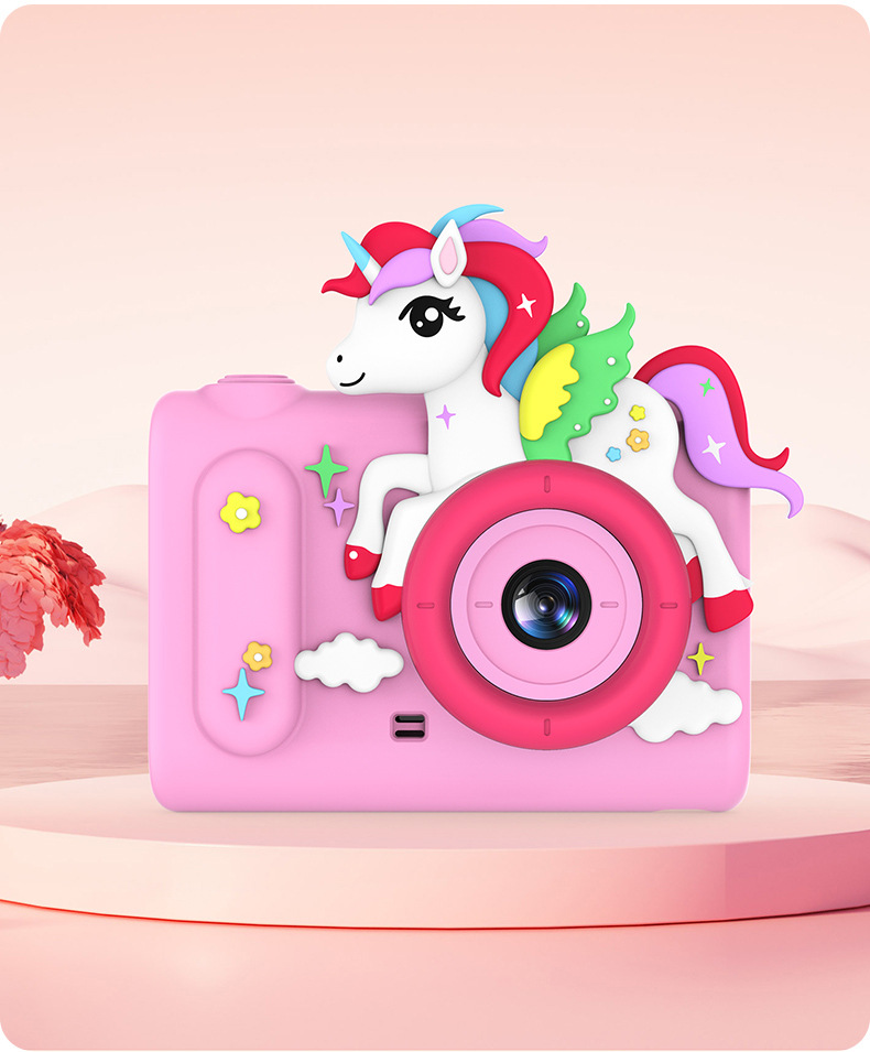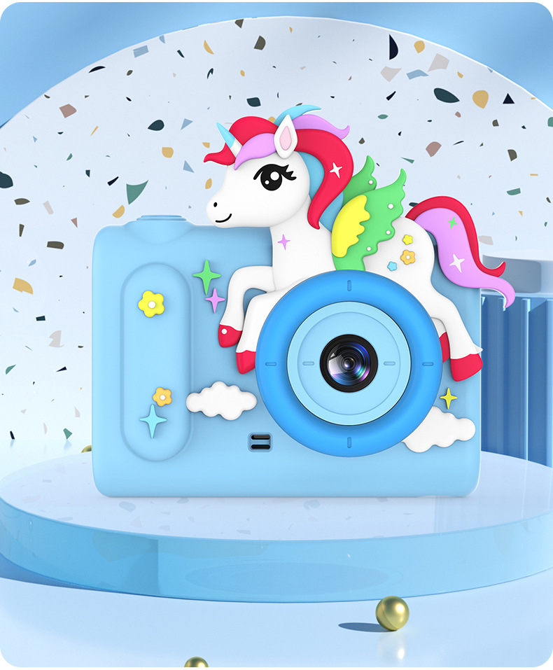 새로운 유니콘 미니 카메라 어린이 HD 픽셀 카메라 만화 보호 커버 장난감 카메라 어린이