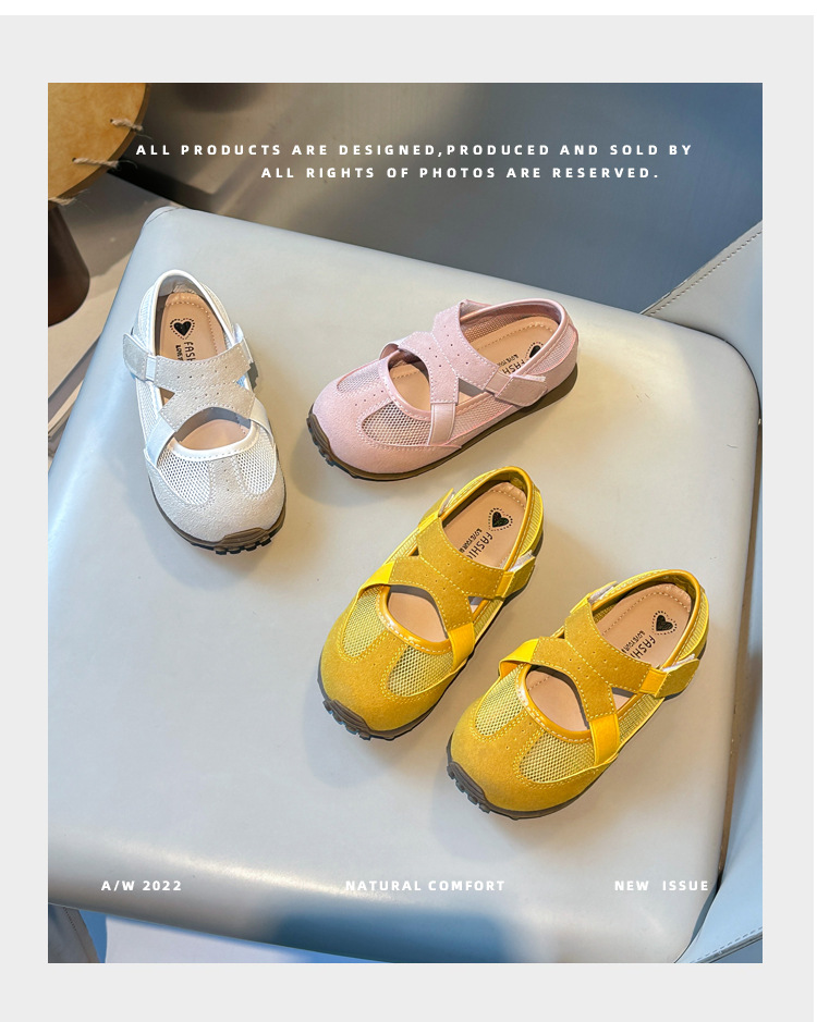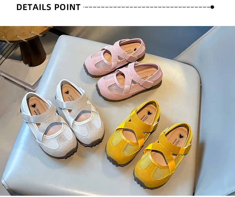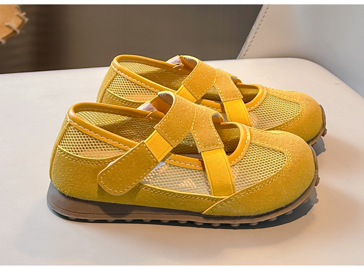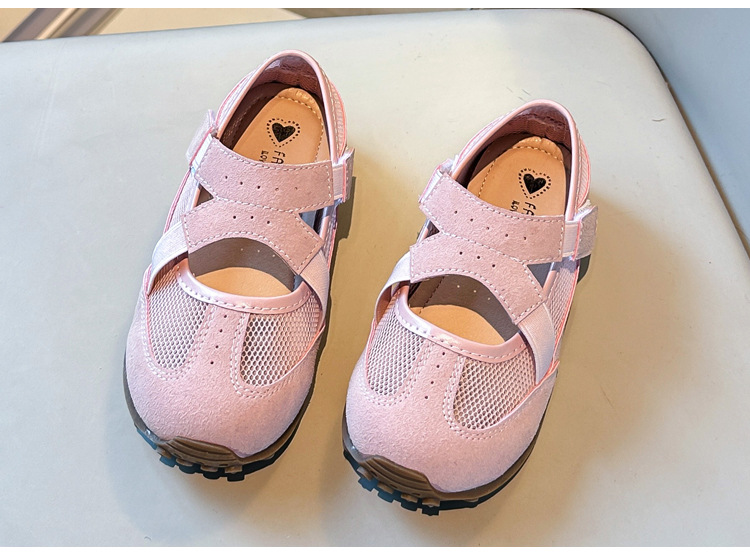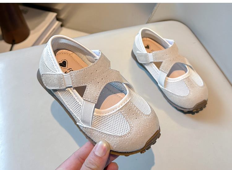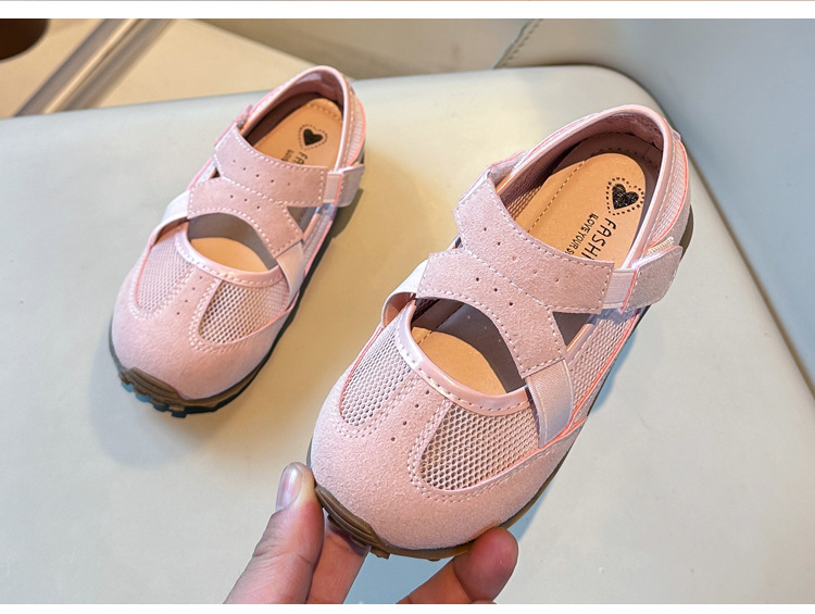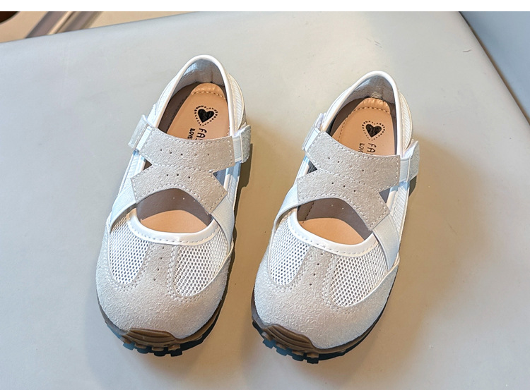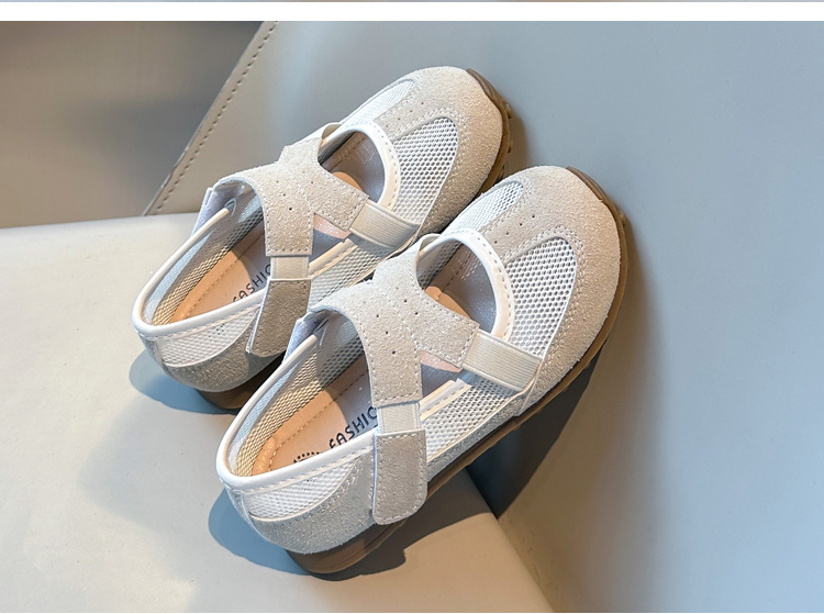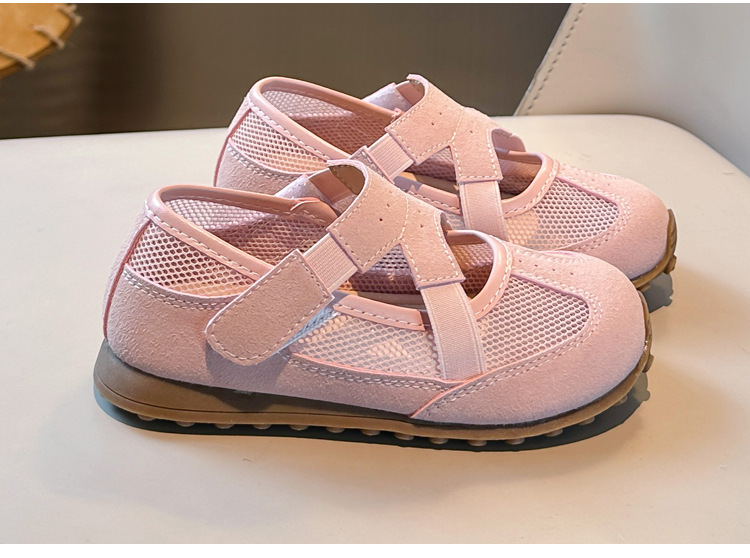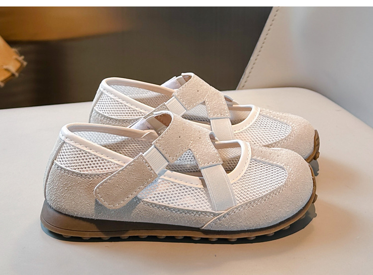 어린이 솔리드 컬러 메쉬 캐주얼 신발 2025 여름 새 소녀 크로스 스트랩 벨크로 운동화 소년을위한 어린이 신발스토어 가기