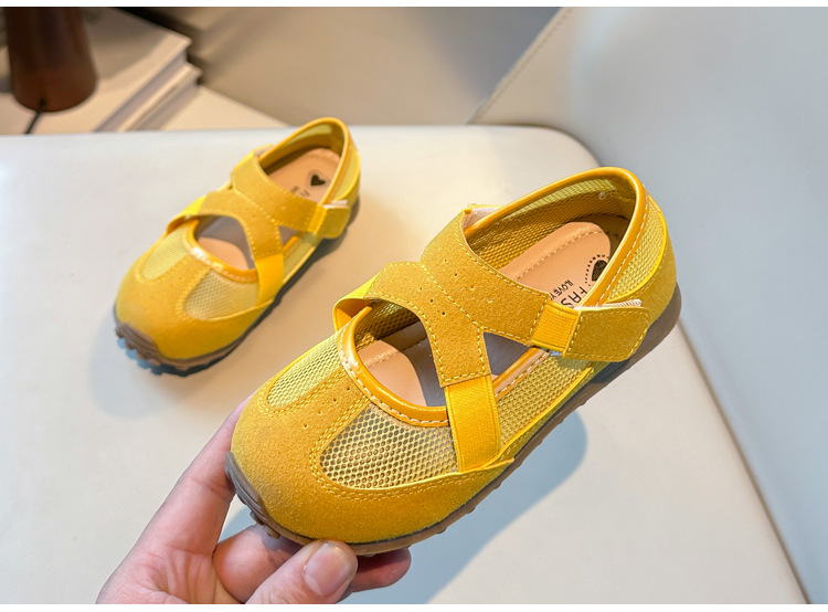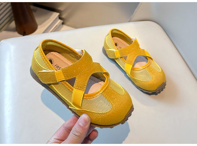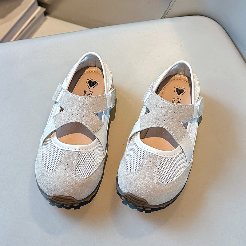 어린이 솔리드 컬러 메쉬 캐주얼 신발 2025 여름 새 소녀 크로스 스트랩 벨크로 운동화 소년을위한 어린이 신발