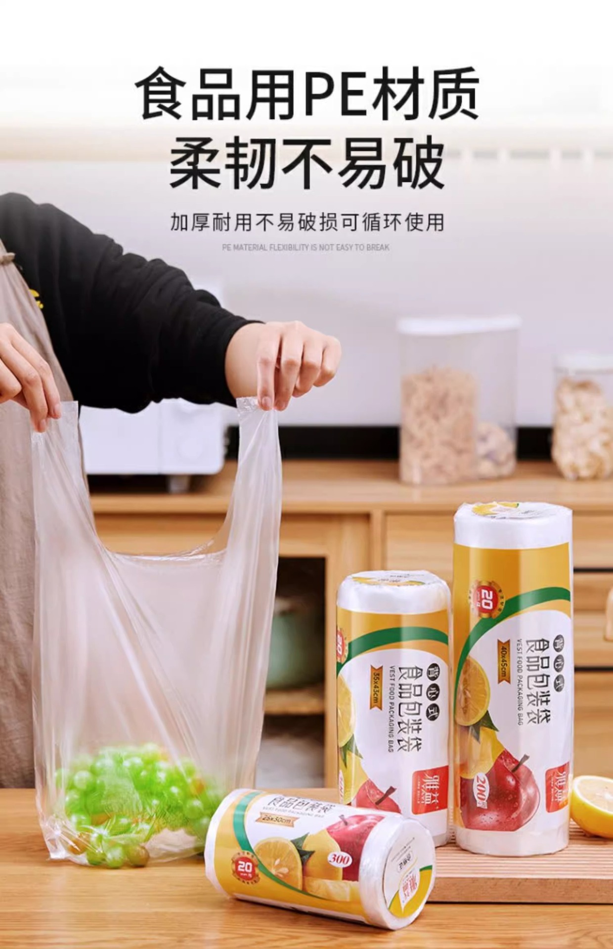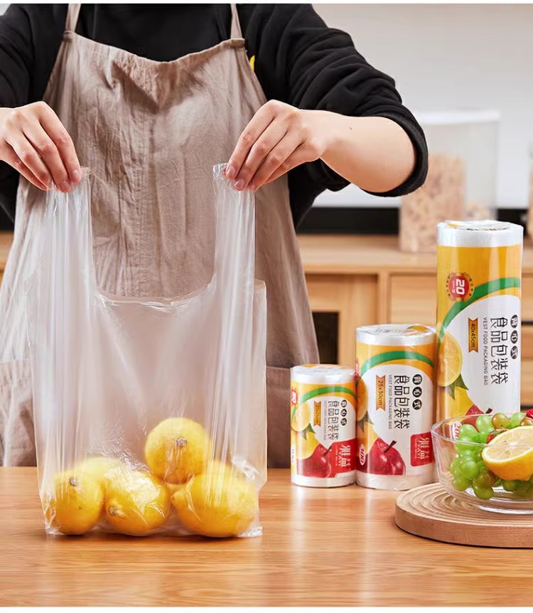 식품용 조끼형 신선보관봉투, 가정용 냉장고 및 전자레인지용 특수 두껍고 볼륨감 있는 일회용 주방 토트백