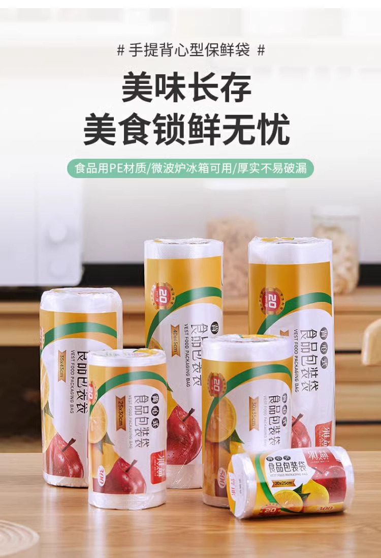 식품용 조끼형 신선보관봉투, 가정용 냉장고 및 전자레인지용 특수 두껍고 볼륨감 있는 일회용 주방 토트백스토어 가기