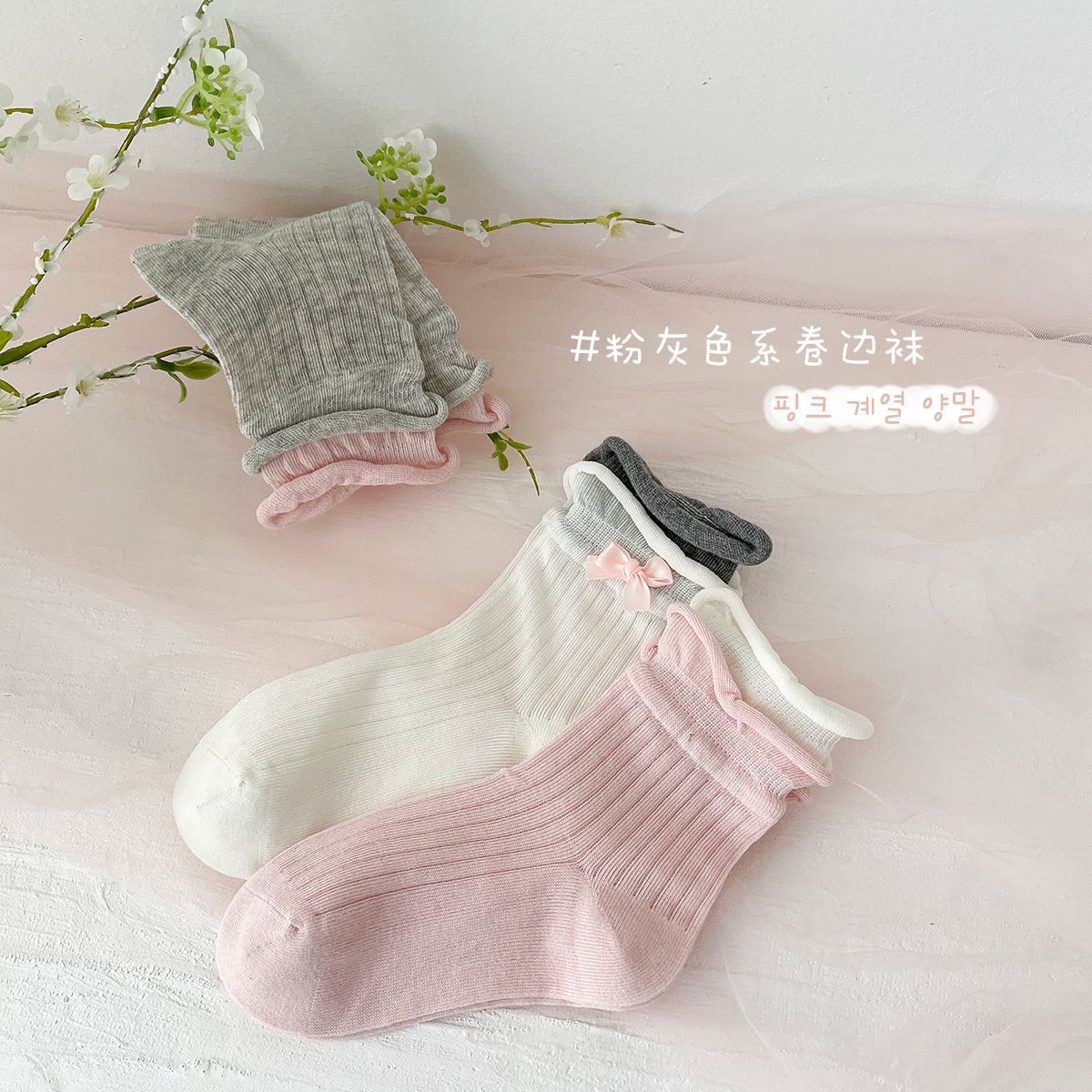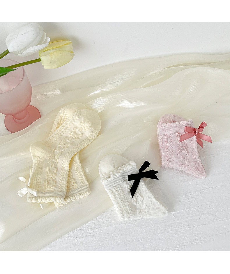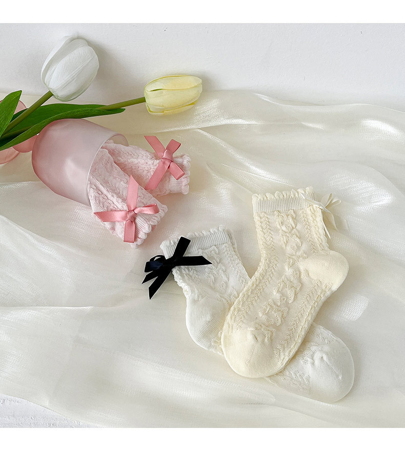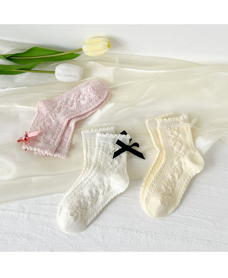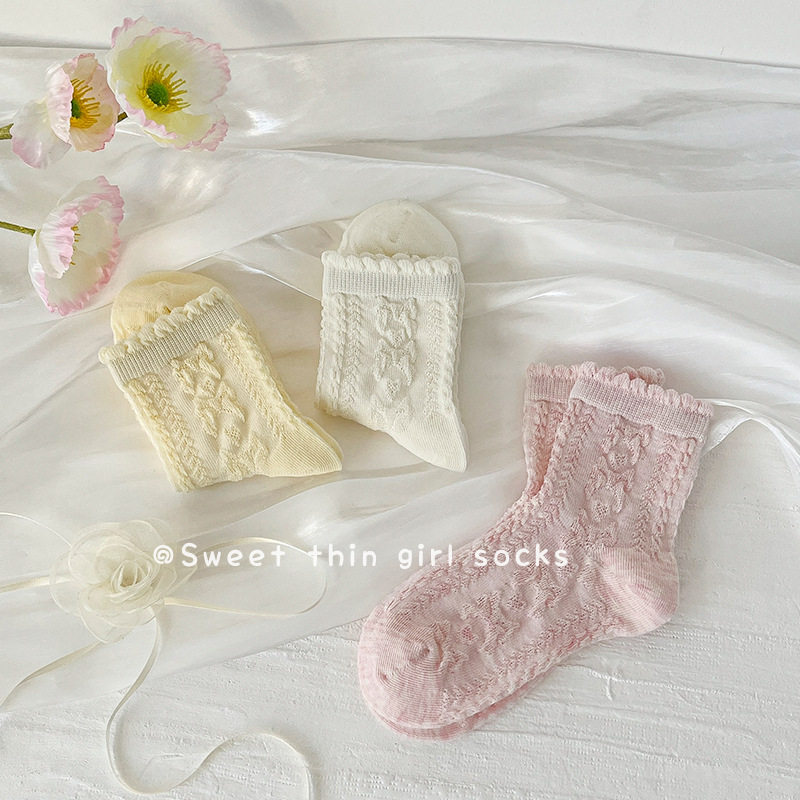 봄여름 얇은 리본 레이스 여아용 중목 양말 공주풍 아동 양말 캔디 컬러 A급 면 양말 여아용