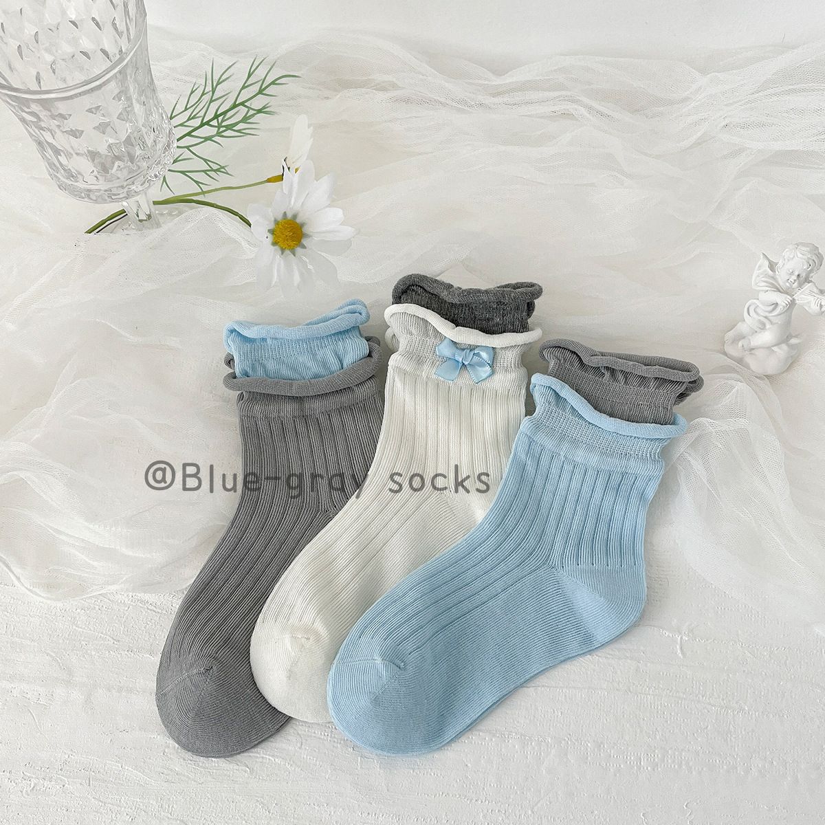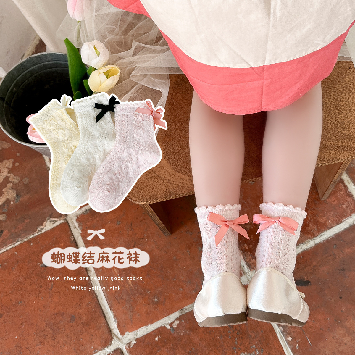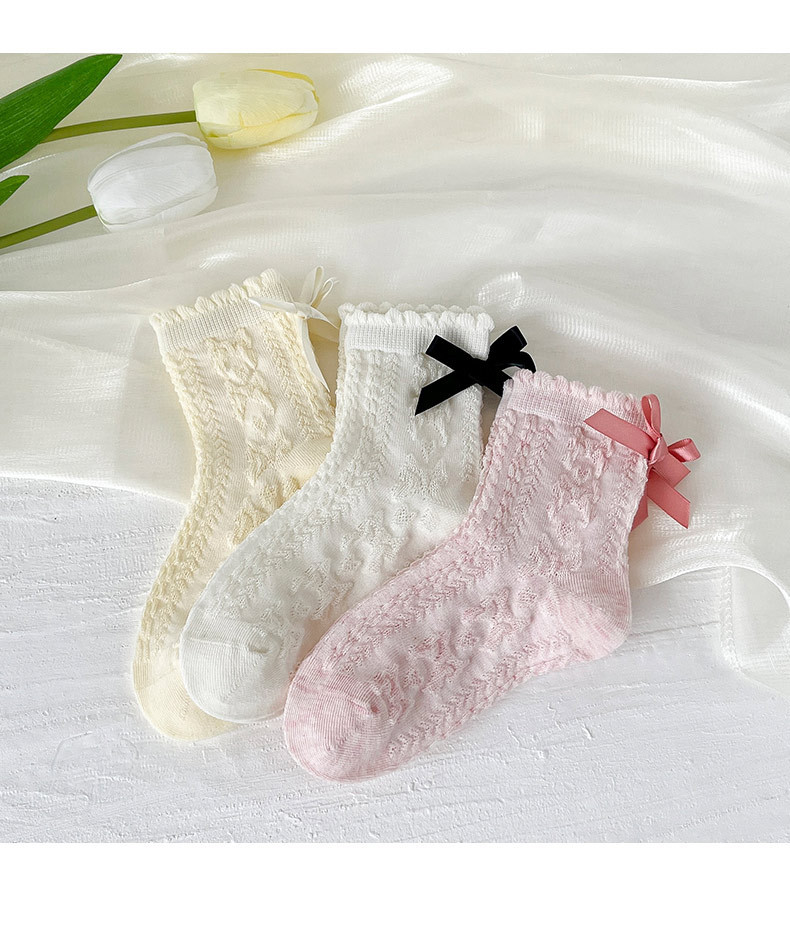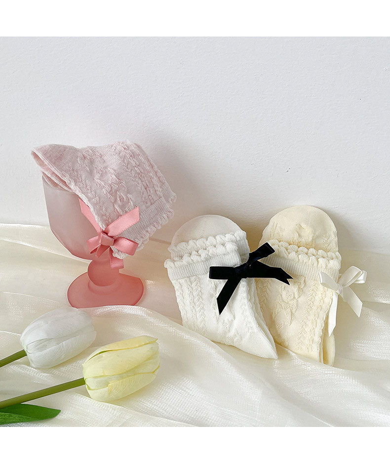 봄여름 얇은 리본 레이스 여아용 중목 양말 공주풍 아동 양말 캔디 컬러 A급 면 양말 여아용