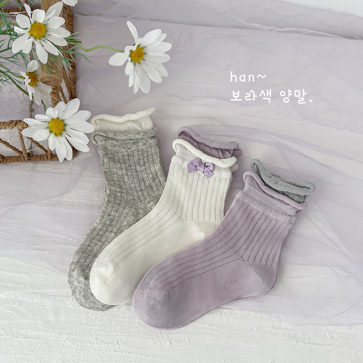 봄여름 얇은 리본 레이스 여아용 중목 양말 공주풍 아동 양말 캔디 컬러 A급 면 양말 여아용스토어 가기