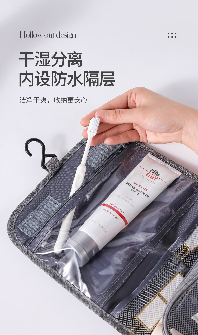 한국어 버전 여행용 걸이형 양이온 방수 세면도구 가방 다기능 메이크업 세면도구 경량 보관 가방
