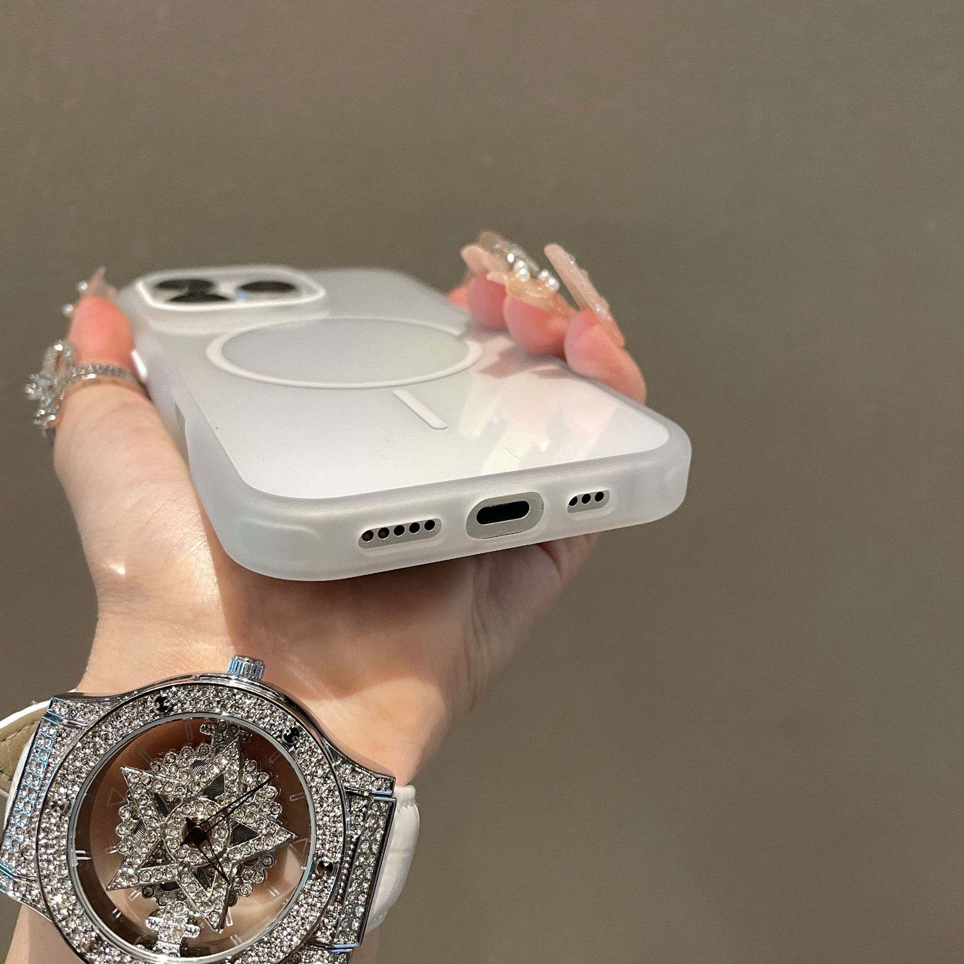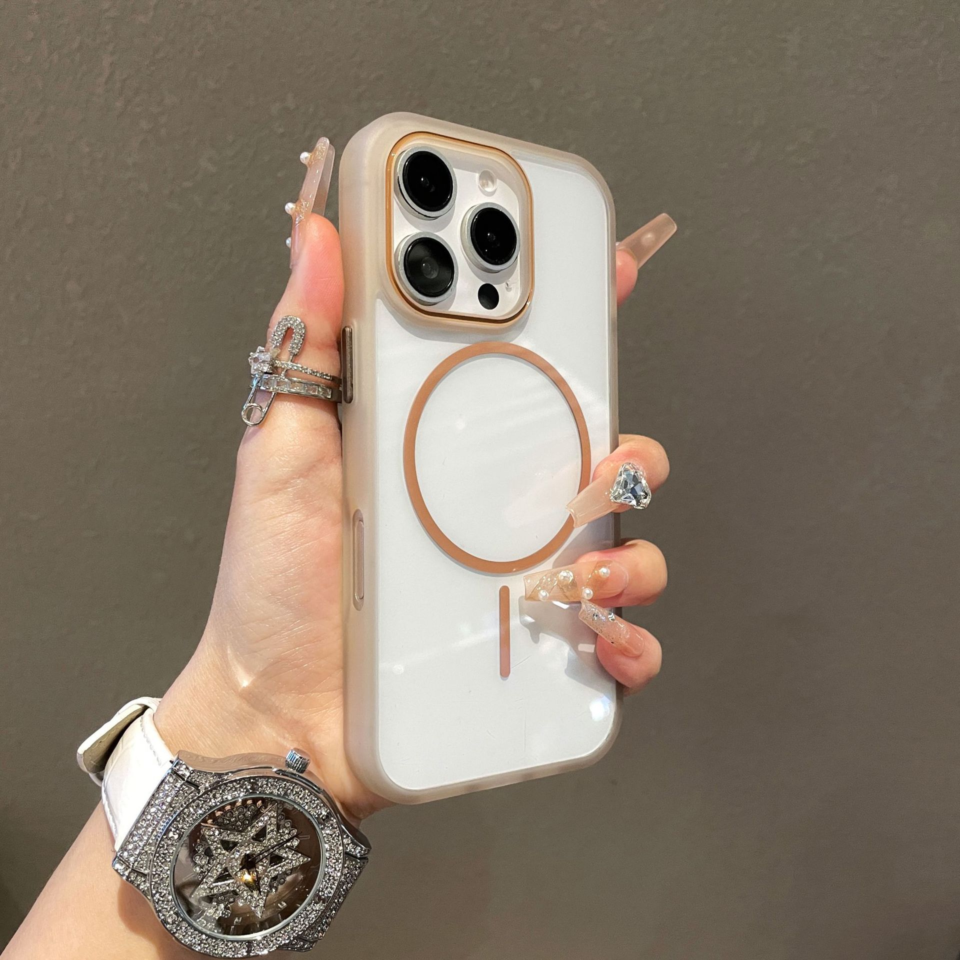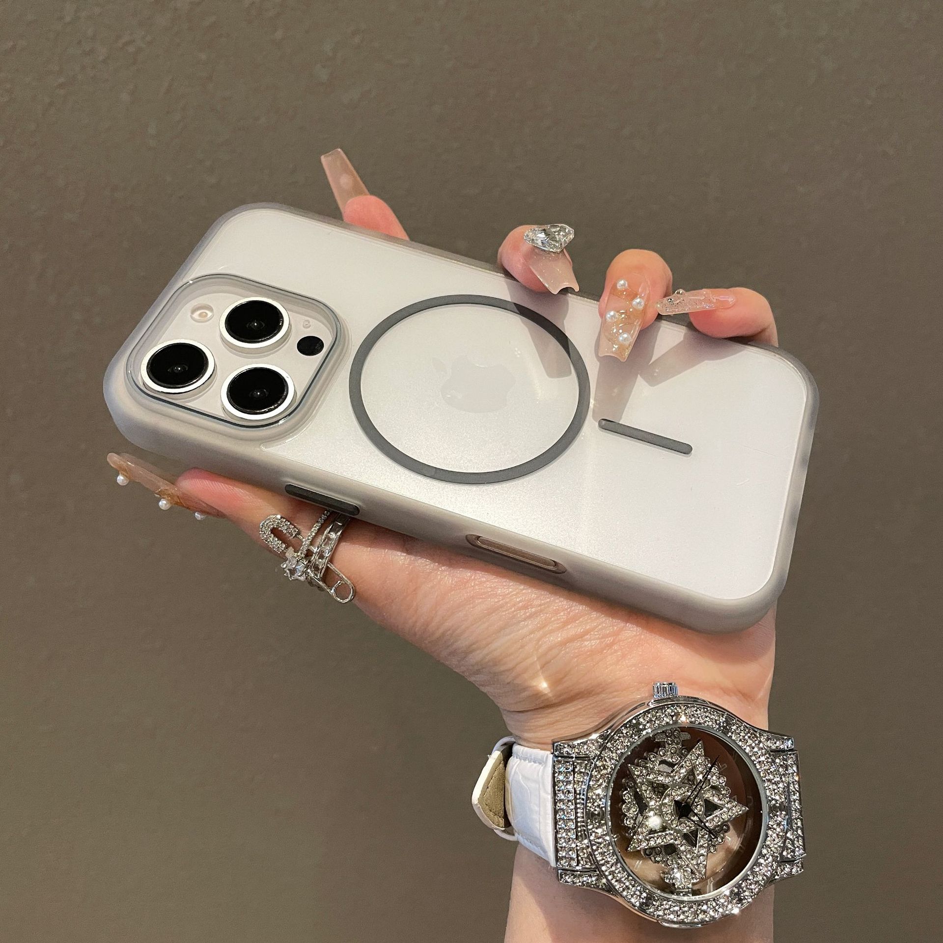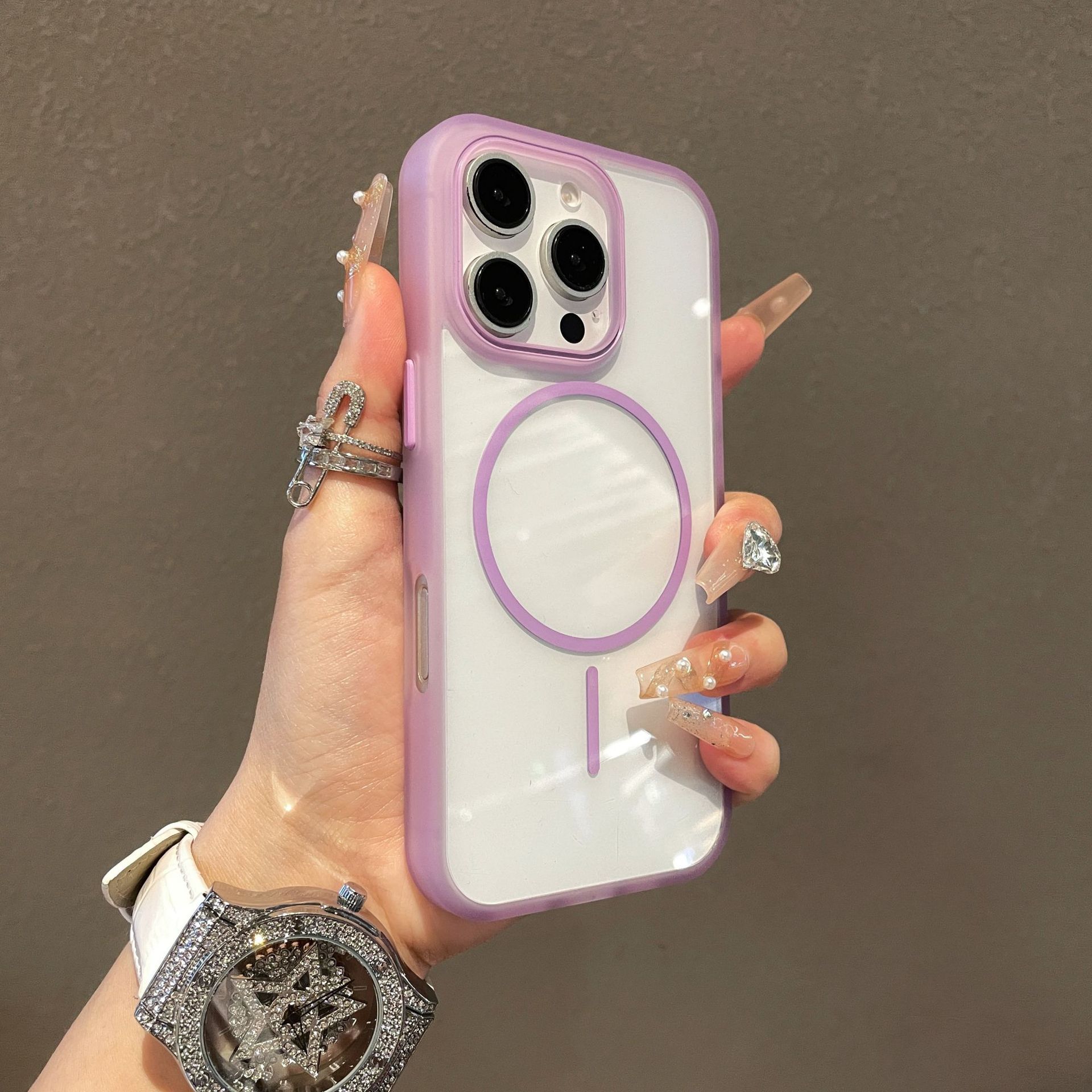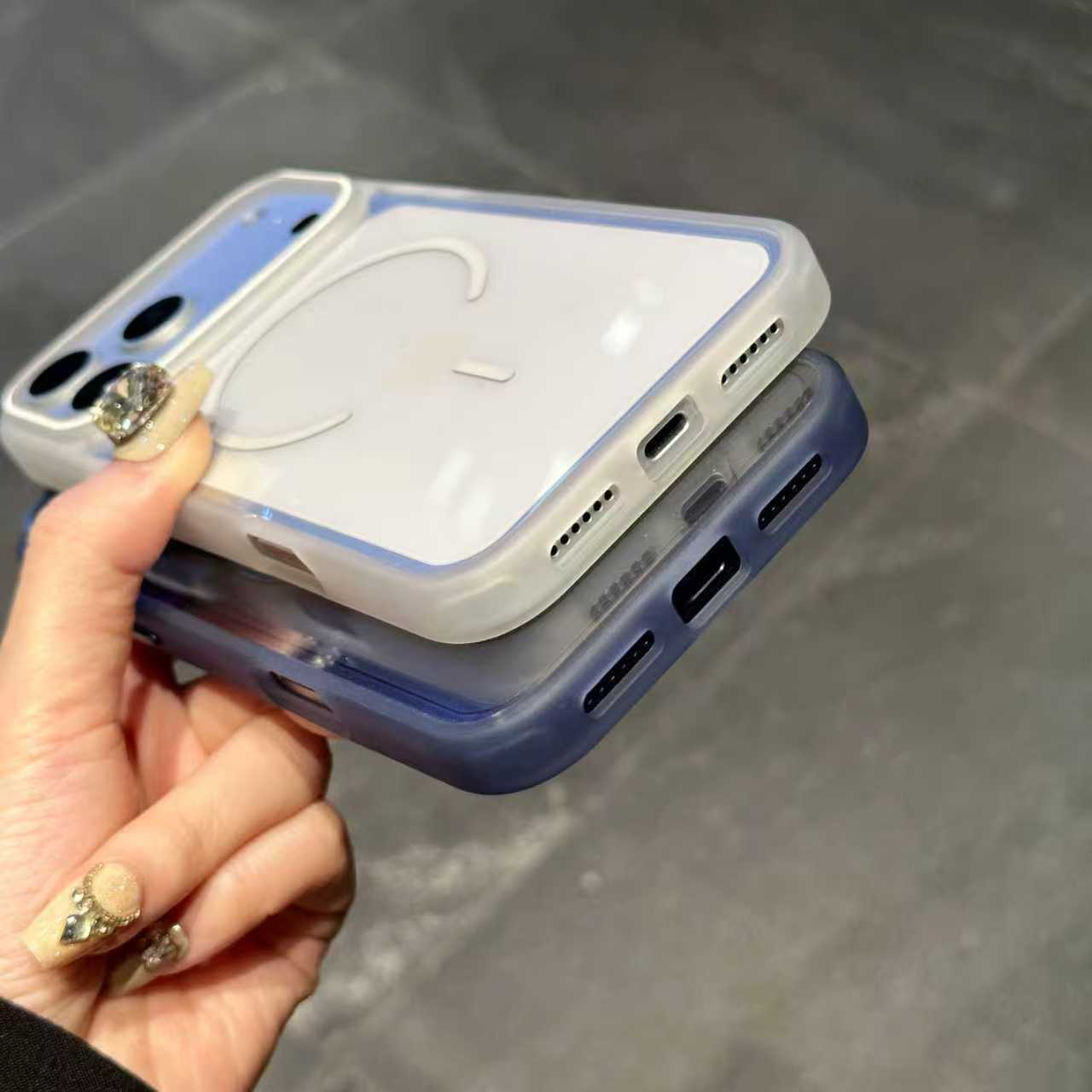 새로운 모델 iPhone17promax용 자석 휴대폰 케이스 애플16 반투명 테두리 투명 뒷면 보호 케이스14