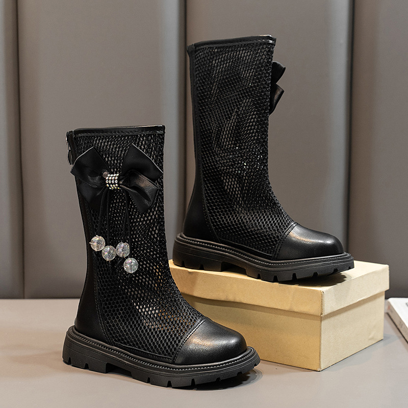 여자 공주 샌들 마틴 부츠 여름 새로운 부드러운 밑창 성능 메쉬 부츠 큰 어린이를위한 통기성 메쉬 하이 부츠