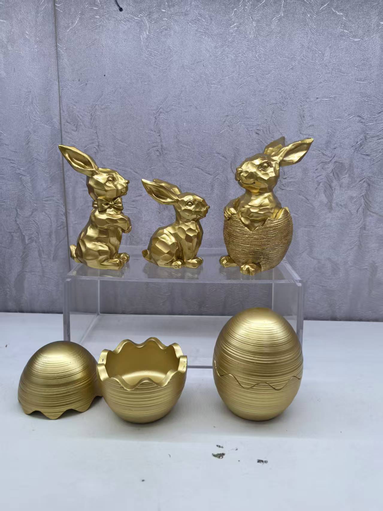 수지 황금 토끼 장식 부활절 토끼 동상 3 조각 세트 봄 바탕 화면 장식 아마존 새로운스토어 가기