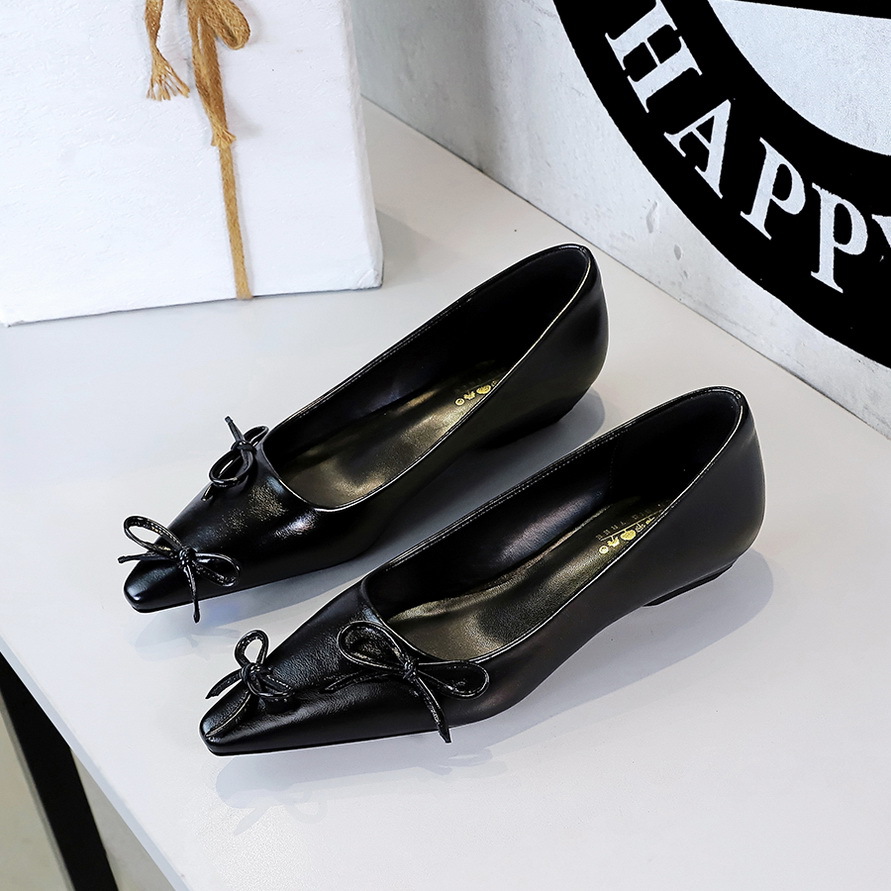 3683-18 한국판 프랑스 기질 뾰족한 요정 신발 쐐기 발 뒤꿈치 얕은 활 슬림 페달 신발 여성