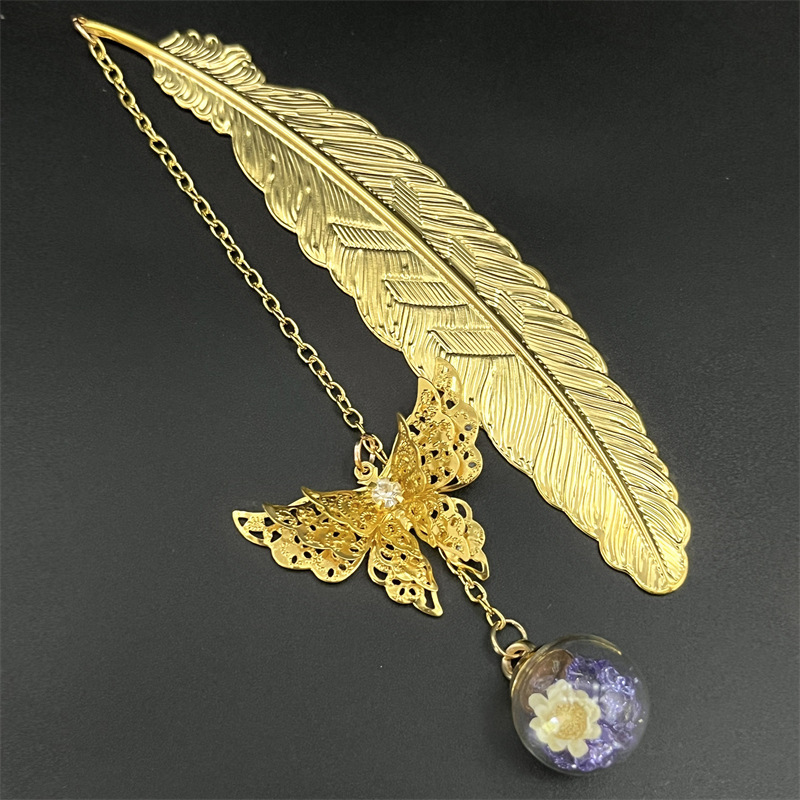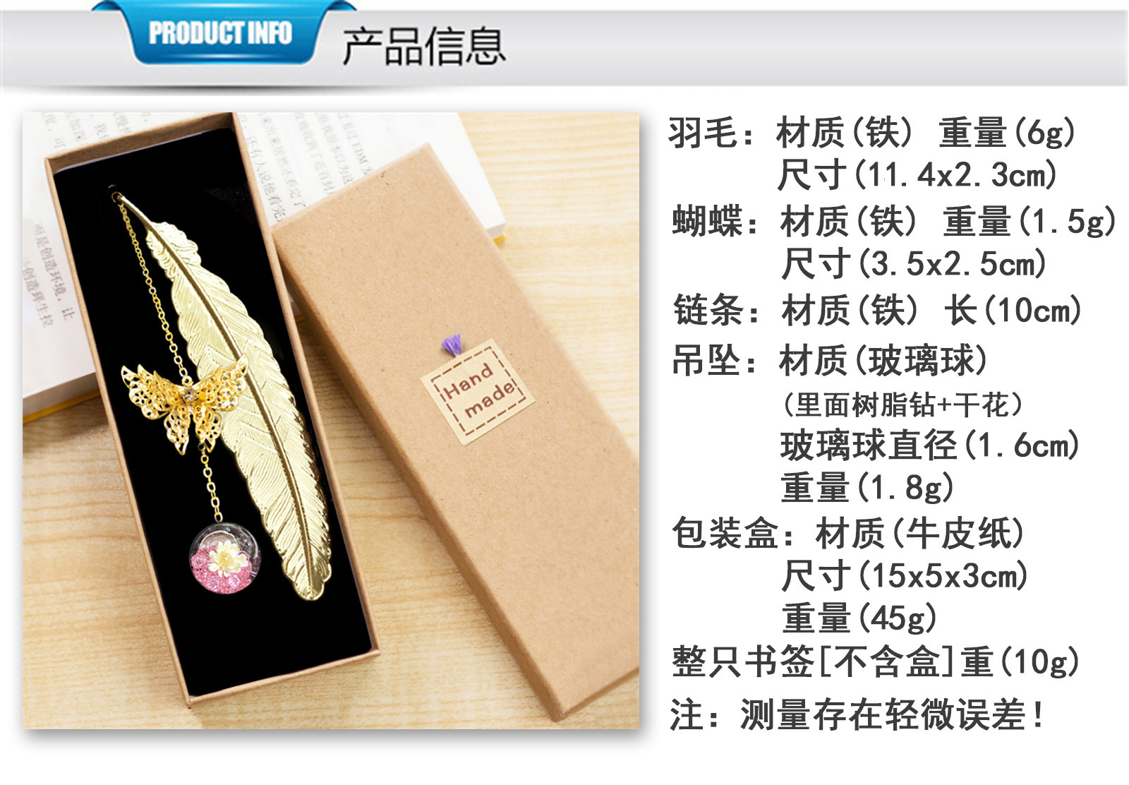 골동품 금속 잎 깃털 정맥 선물 상자 북마크 중국 스타일 교사의 날 창조적 인 절묘한 학생 생일 선물