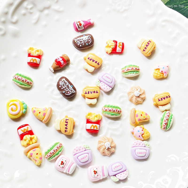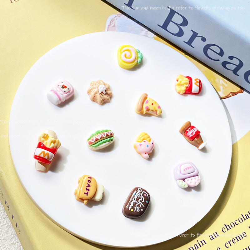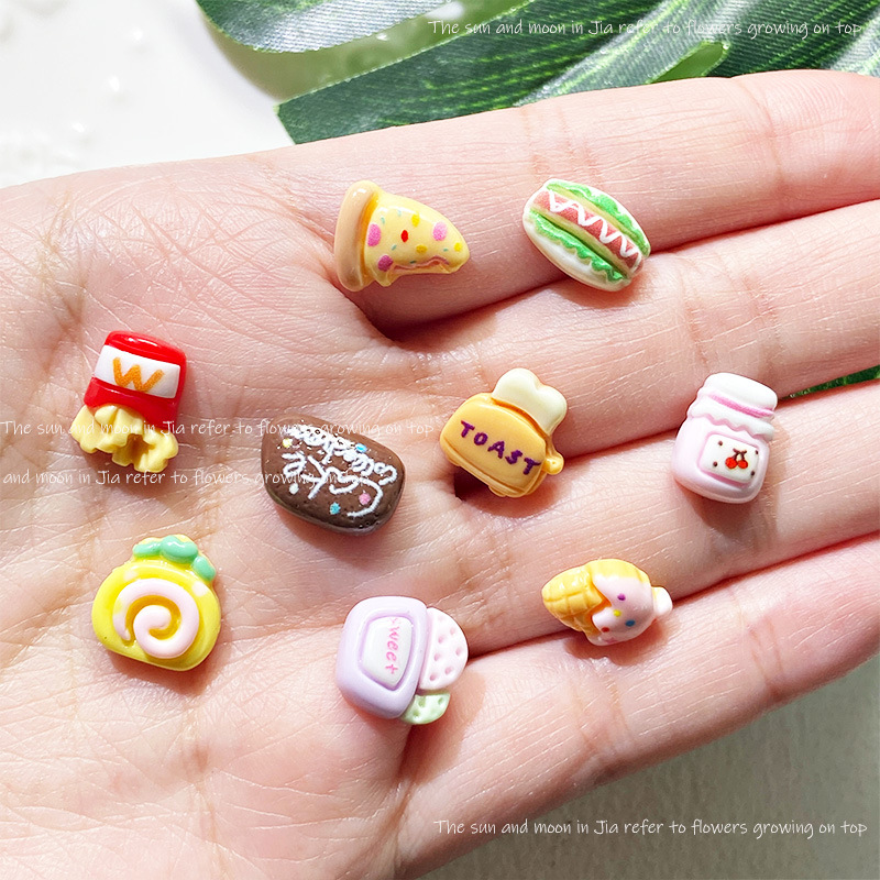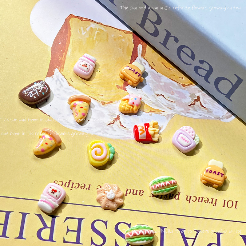 DIY 음식 장난감 빵 만화 네일 아트 액세서리 시뮬레이션 피자 아이스크림 크림 접착제 냉장고 자석 머리핀 액세서리