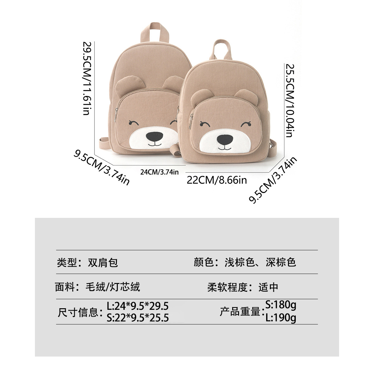 Feihong 국경 간 곰 배낭 코듀로이 초등학교 가방 패션 캐주얼 배낭 귀여운 만화 플러시 가방스토어 가기