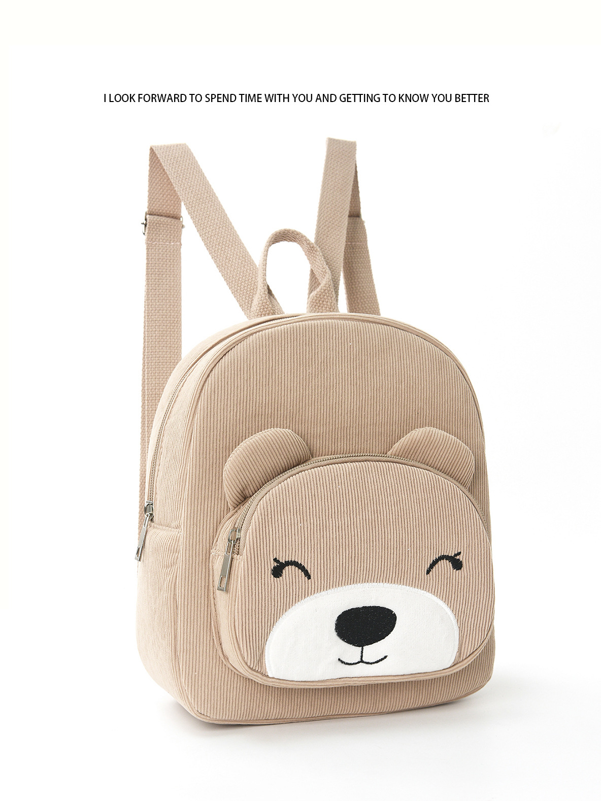 Feihong 국경 간 곰 배낭 코듀로이 초등학교 가방 패션 캐주얼 배낭 귀여운 만화 플러시 가방
