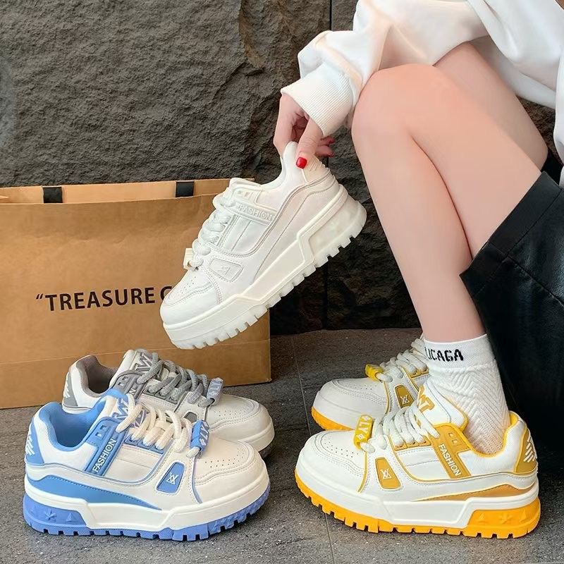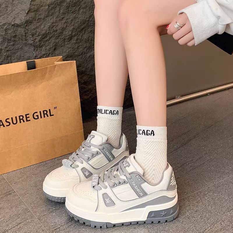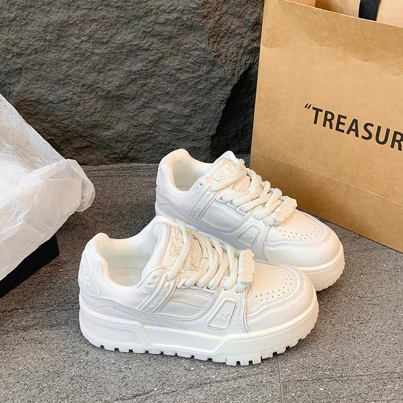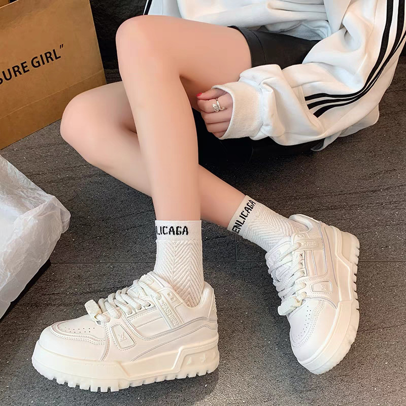 유럽의 작은 흰색 신발 두꺼운 밑창 보드 신발 여성의 2025 년 이른 봄 머핀 작은 지방 딩 레저 스포츠 큰 머리 빵 신발스토어 가기