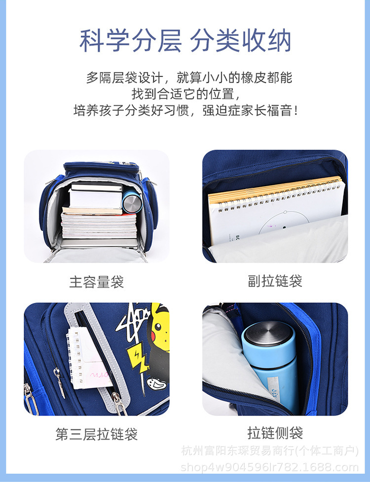 공장 직접 학교 가방 초등학생 방수 피카추 트렌드 조명 어린이 학교 가방 도매 대외 무역의 부담을 줄이기 위해스토어 가기