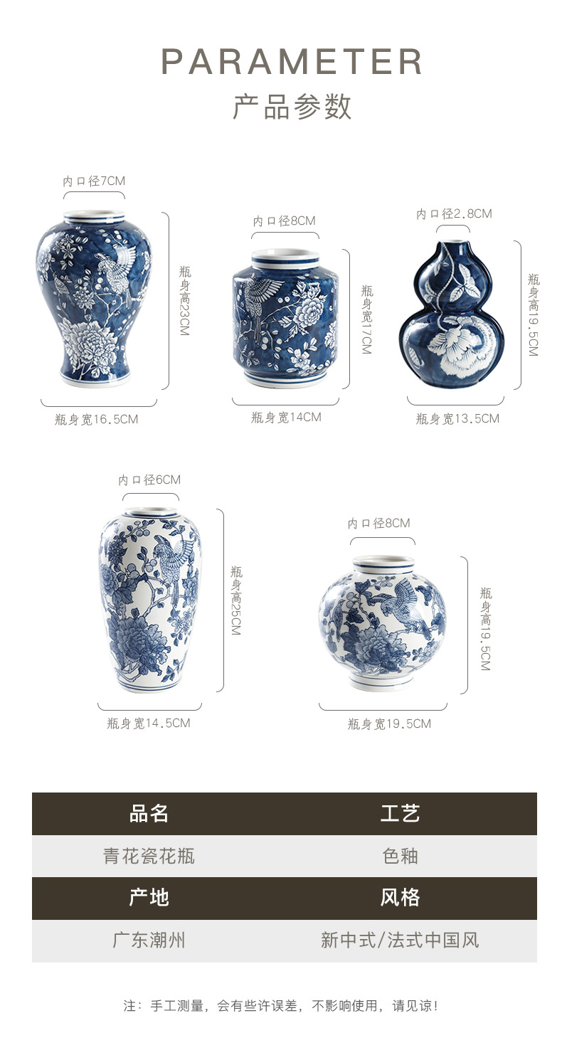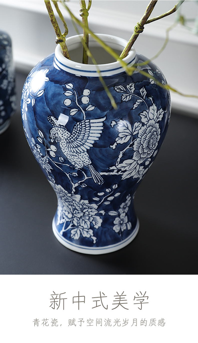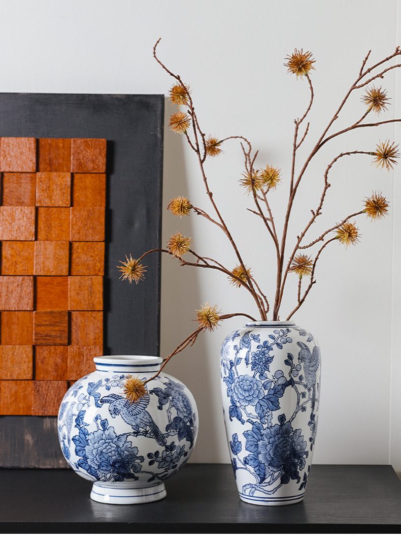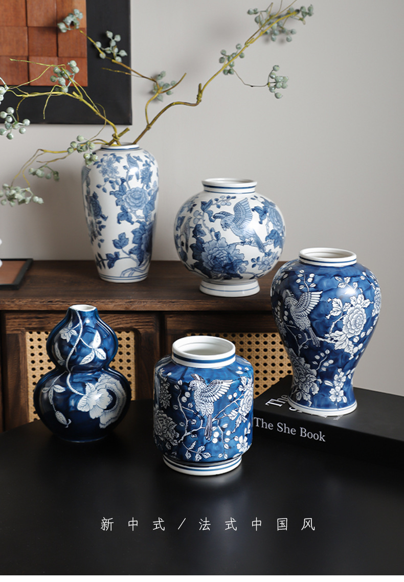 청화 도자기 꽃병 고급스러운 신중국풍 복고 장식 송나라 미학 꽃꽂이 도자기 현관 장식품