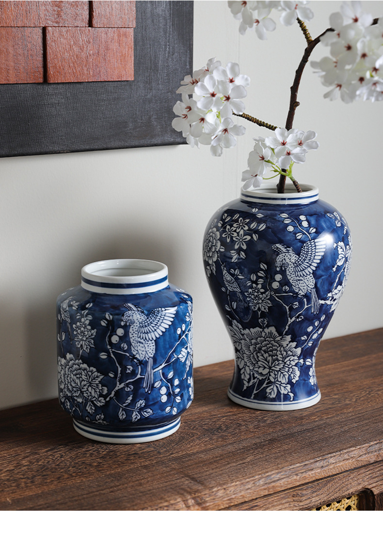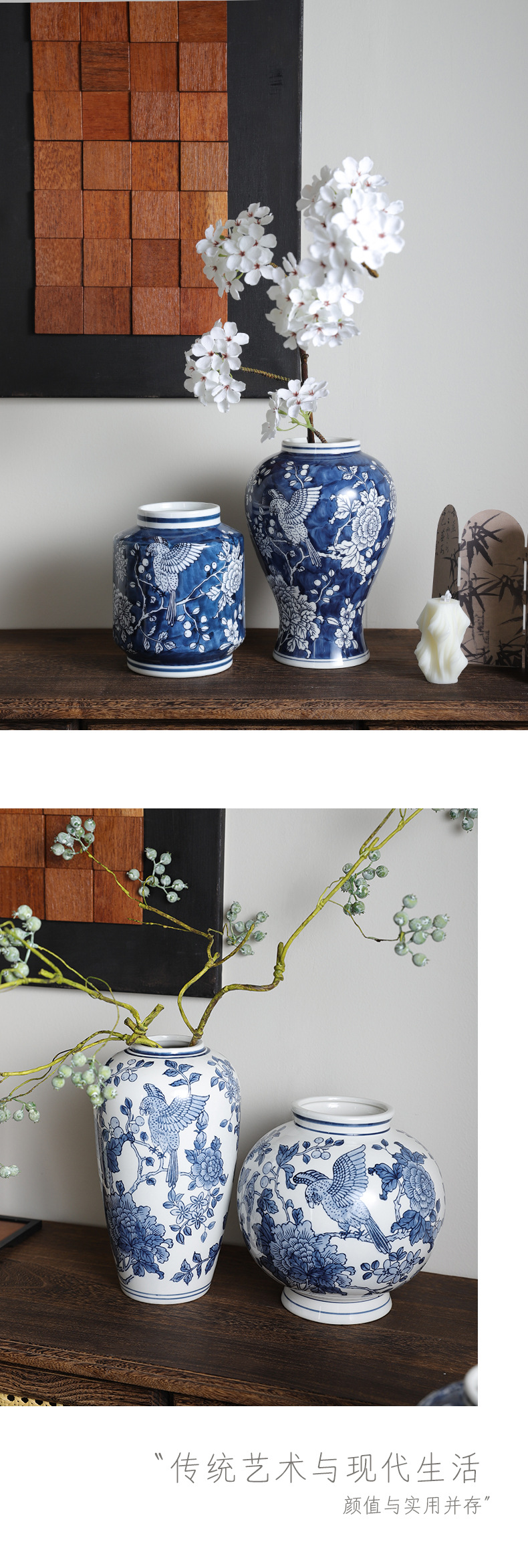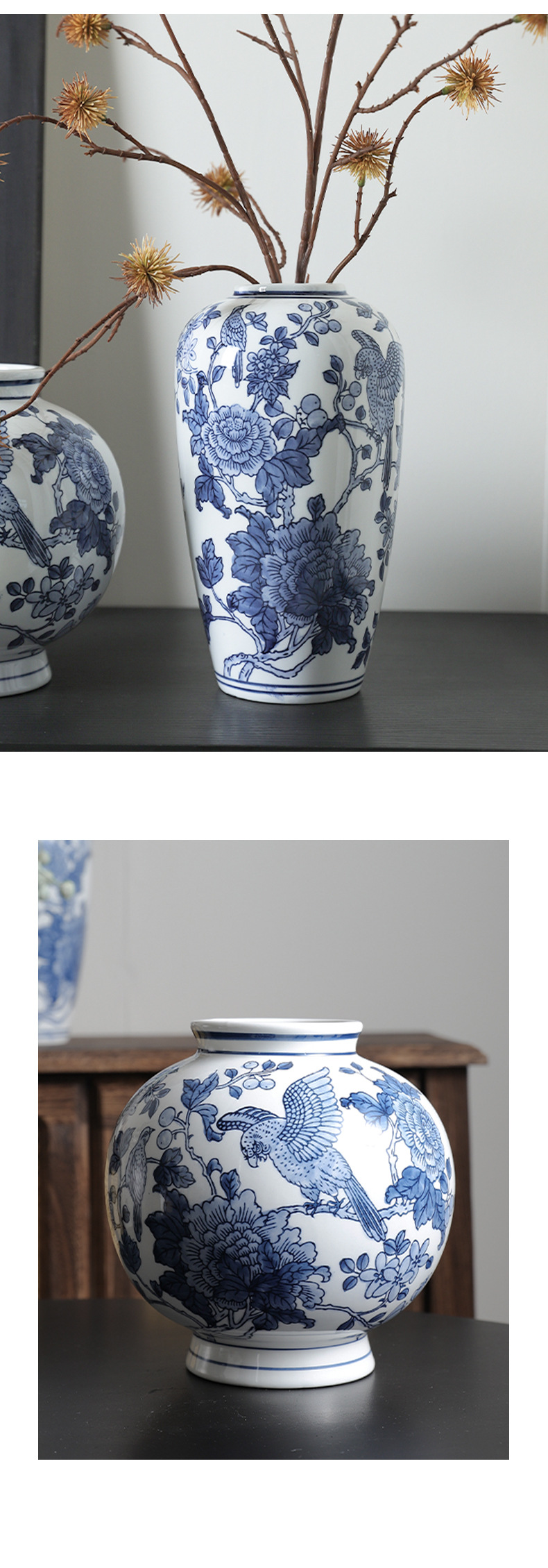 청화 도자기 꽃병 고급스러운 신중국풍 복고 장식 송나라 미학 꽃꽂이 도자기 현관 장식품
