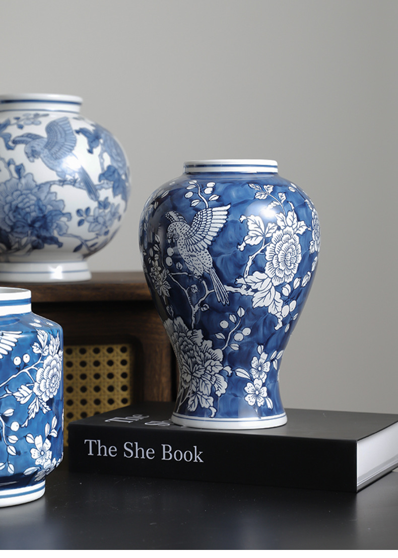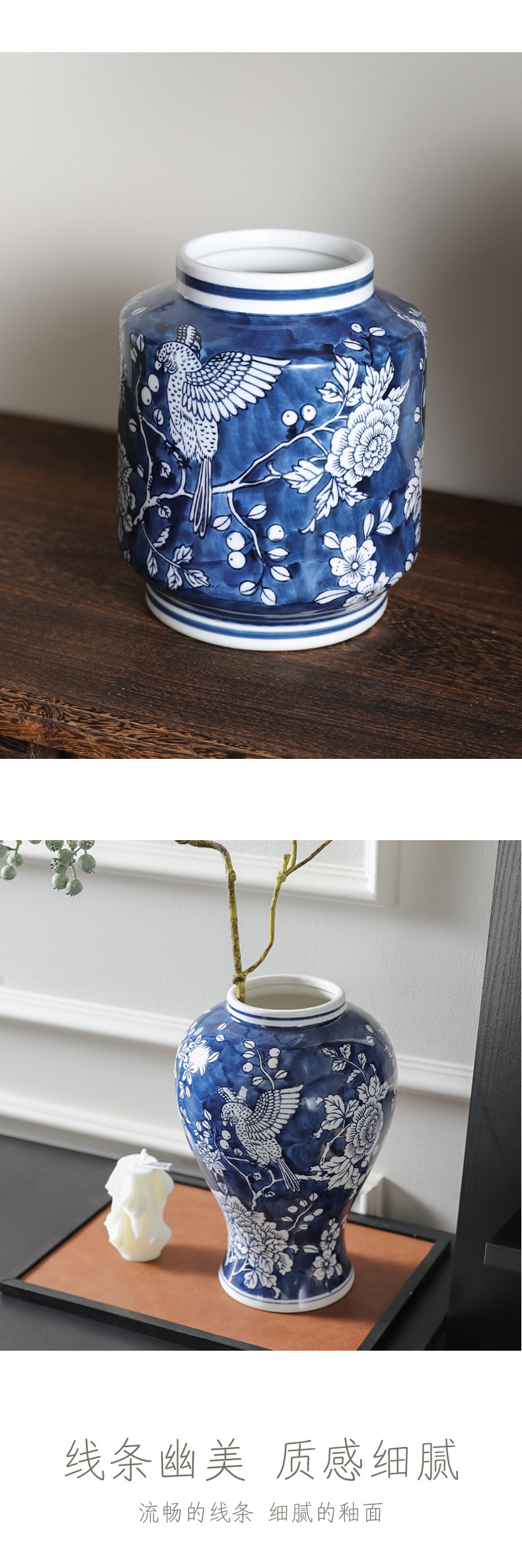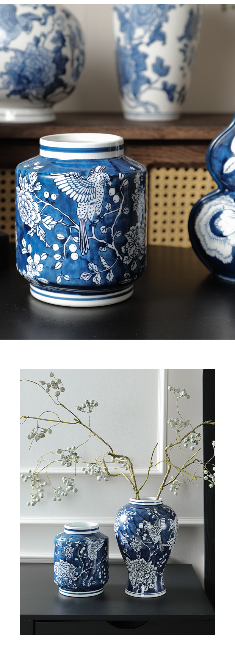 청화 도자기 꽃병 고급스러운 신중국풍 복고 장식 송나라 미학 꽃꽂이 도자기 현관 장식품스토어 가기