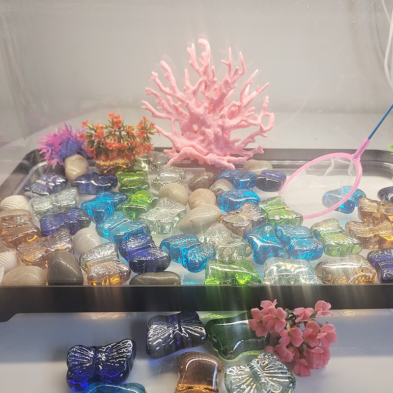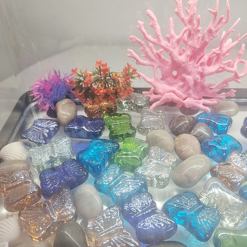 나비 유형 수족관 물고기 탱크 조경 돌 장식 다채로운 돌 물고기 탱크 바닥 모래 물고기 탱크 조경 유리 돌