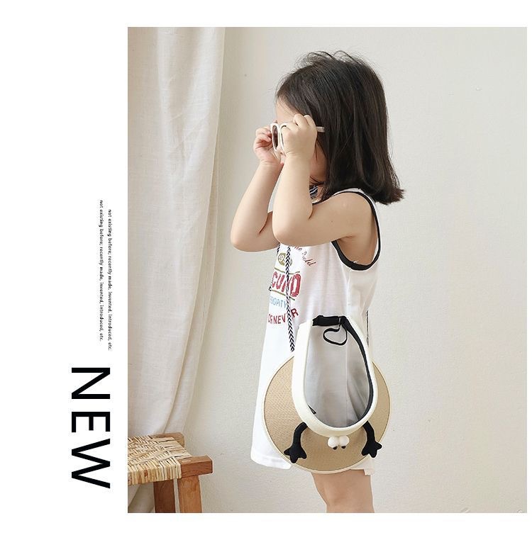 어린이 샤넬 스타일 모자 여름 소녀의 귀여운 선 스크린 모자 빈 탑 차양 모자 소년 아기 만화 태양 모자