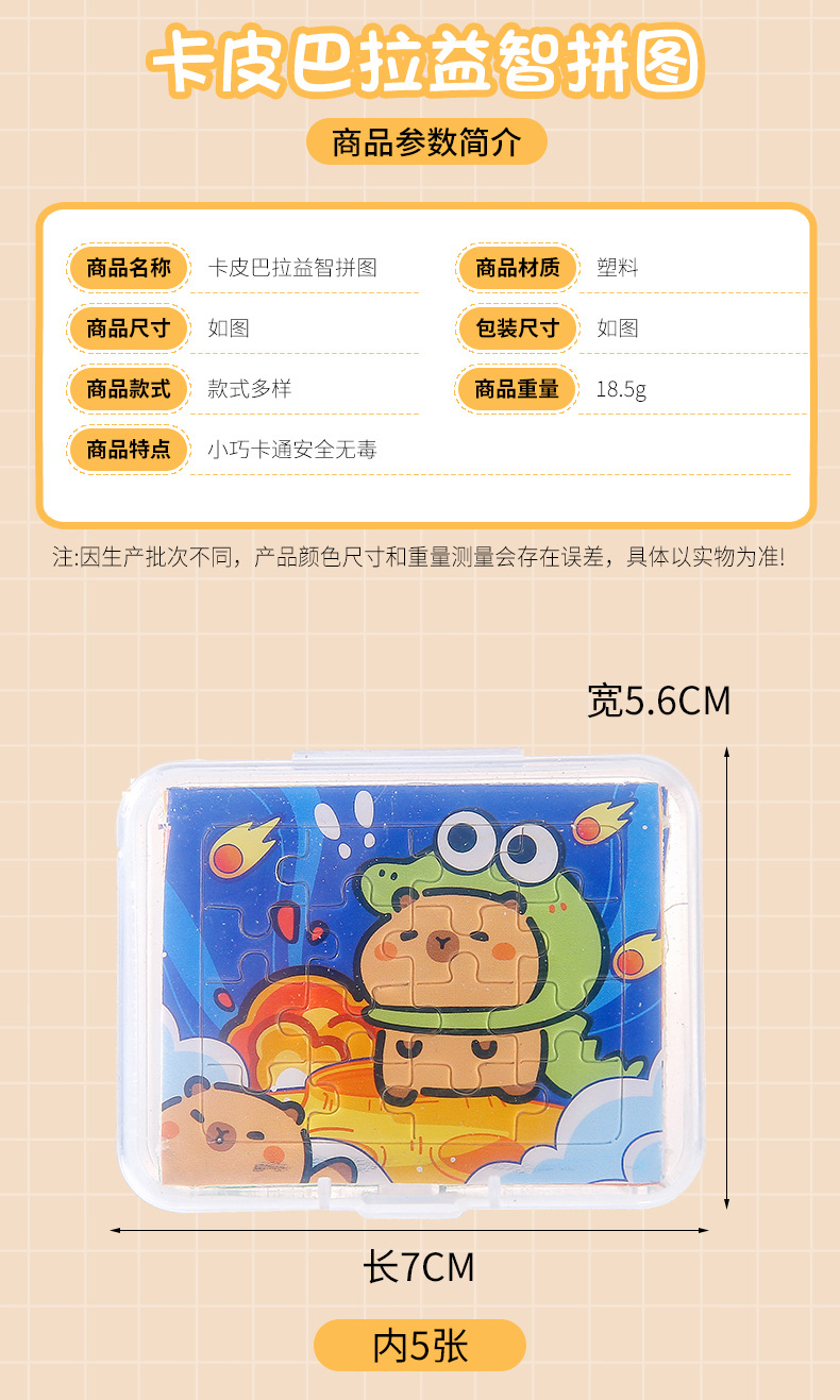 Kapibala 재미있는 교육 퍼즐 Capybara 퍼즐 어린이 만화 장난감 대화 형 작은 장난감 선물 도매
