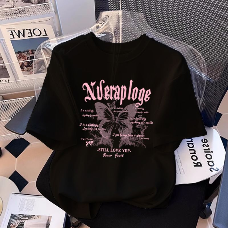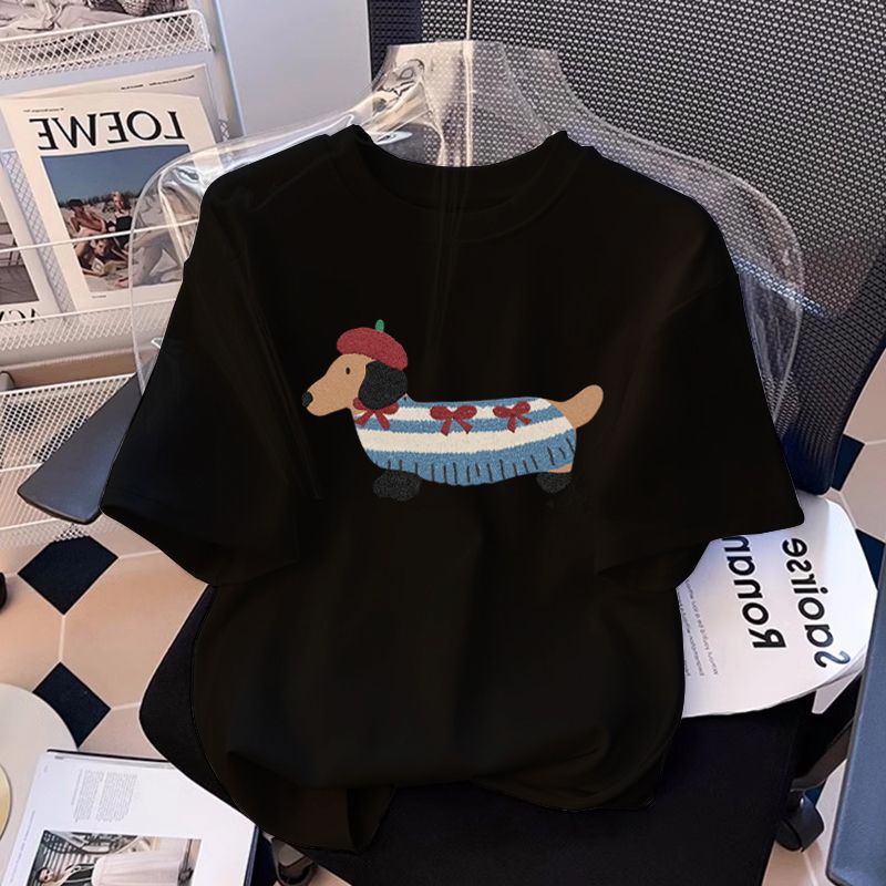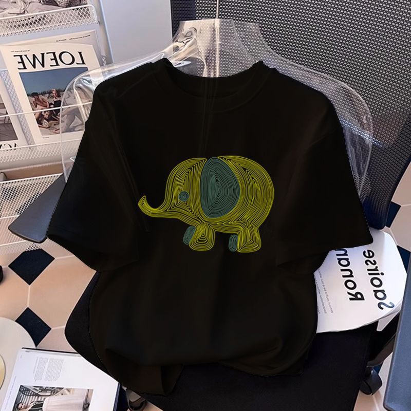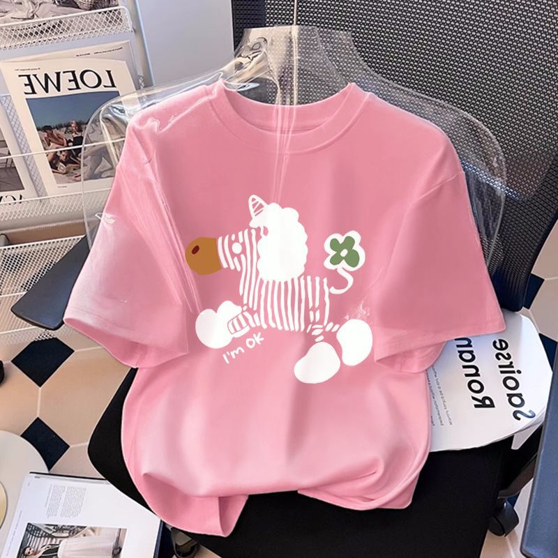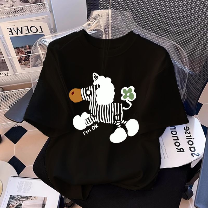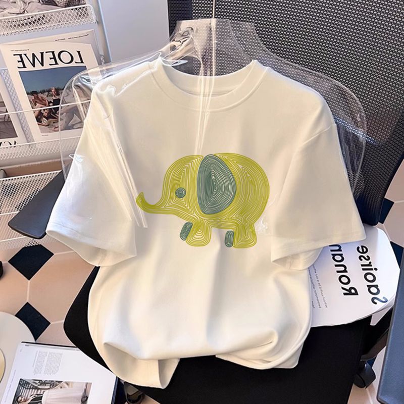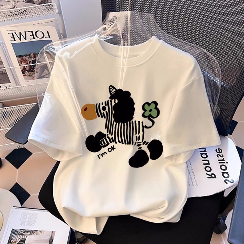 2026 여름 신상 고양이 프린트 반팔 흰색 티셔츠 여성용, 세련되고 나이를 덜어보이는 루즈핏 순면 반팔 상의