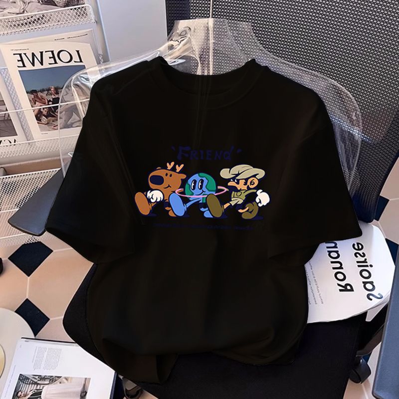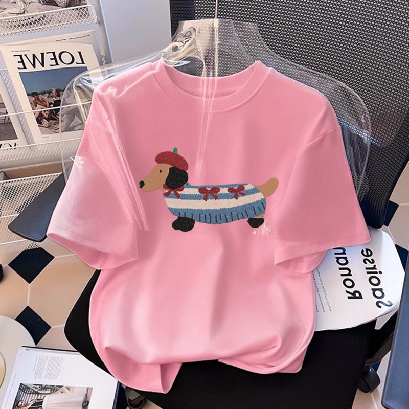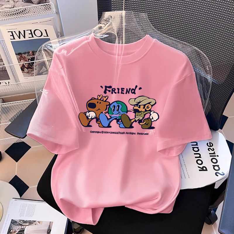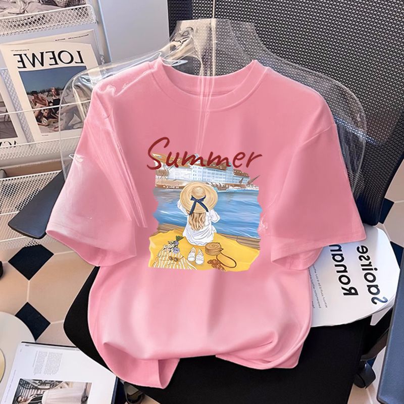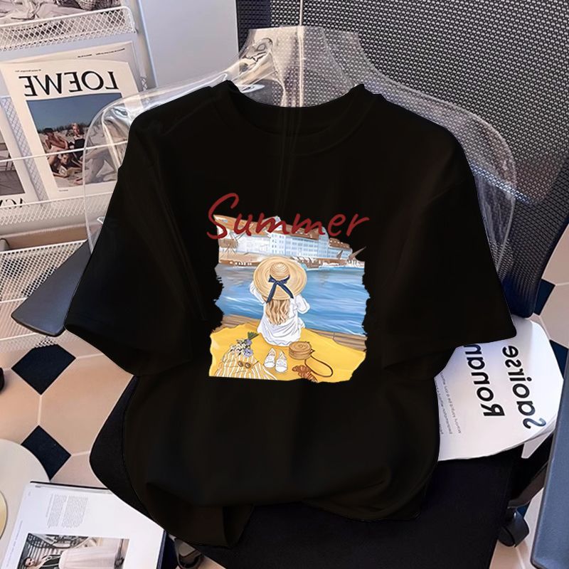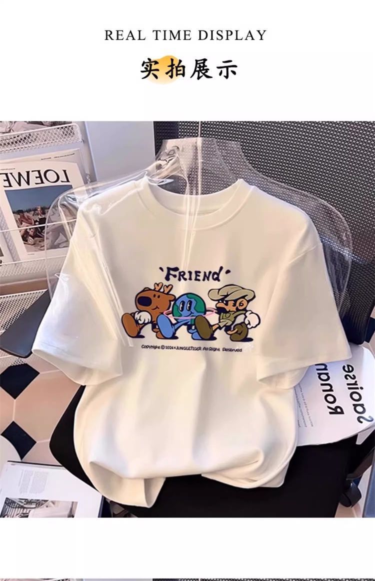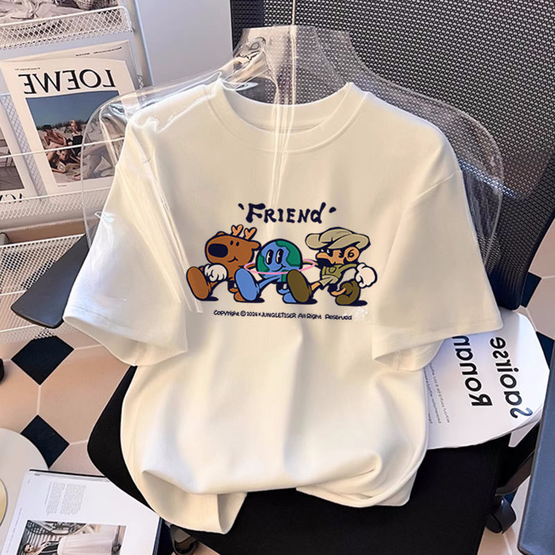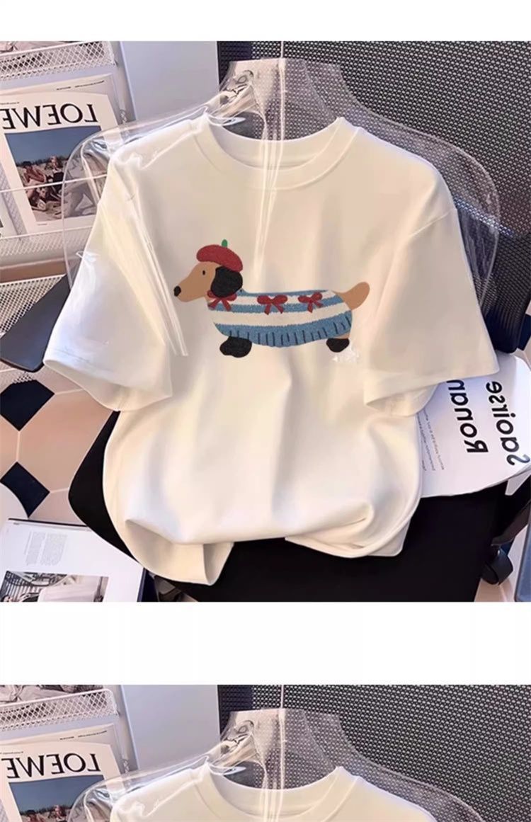 2026 여름 신상 고양이 프린트 반팔 흰색 티셔츠 여성용, 세련되고 나이를 덜어보이는 루즈핏 순면 반팔 상의스토어 가기