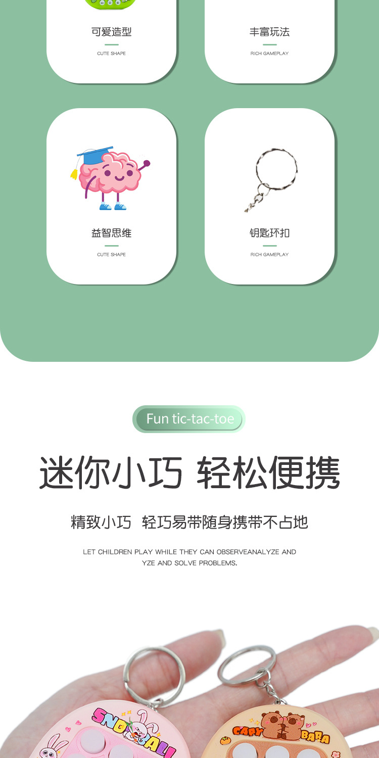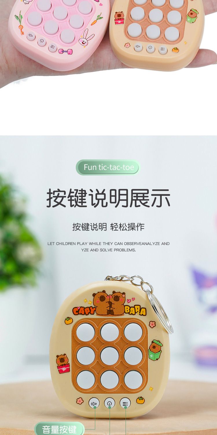 손바닥 크기의 틱택토 게임, 스트레스 해소 전자 애완동물 게임기, 발광 키체인 장난감, 어린이 교육용 장난감