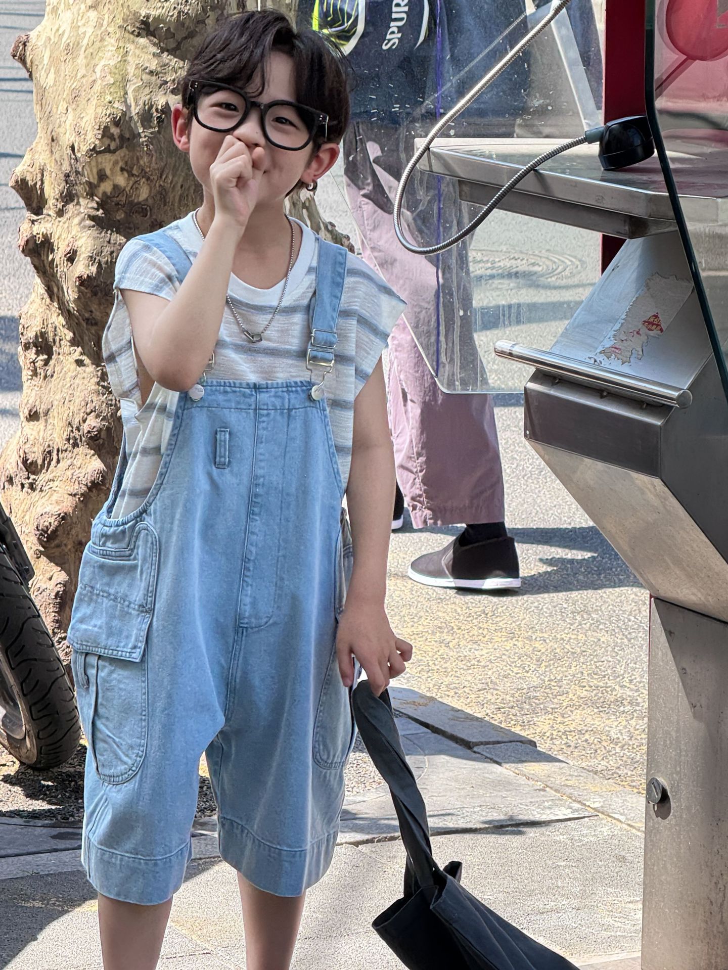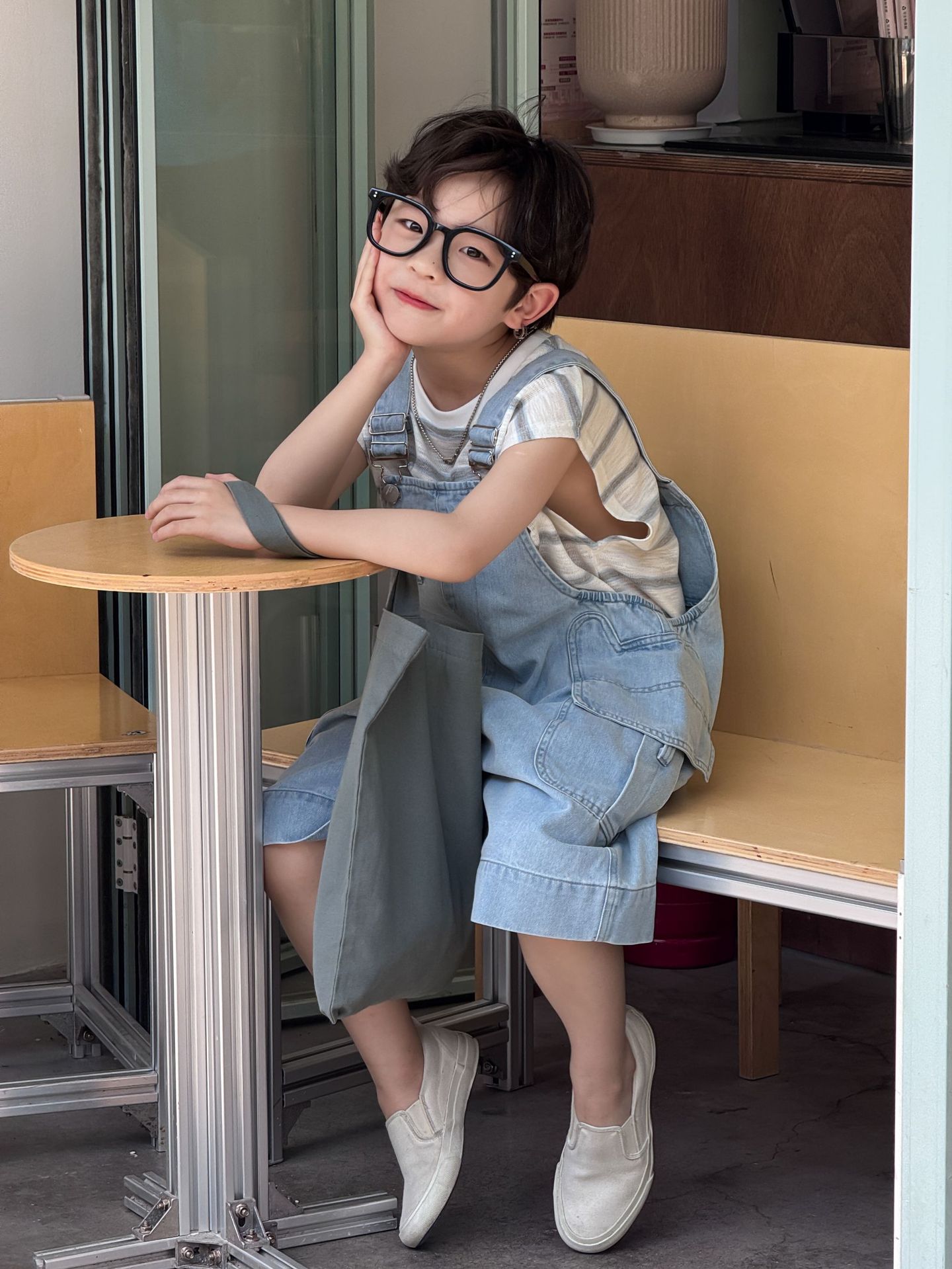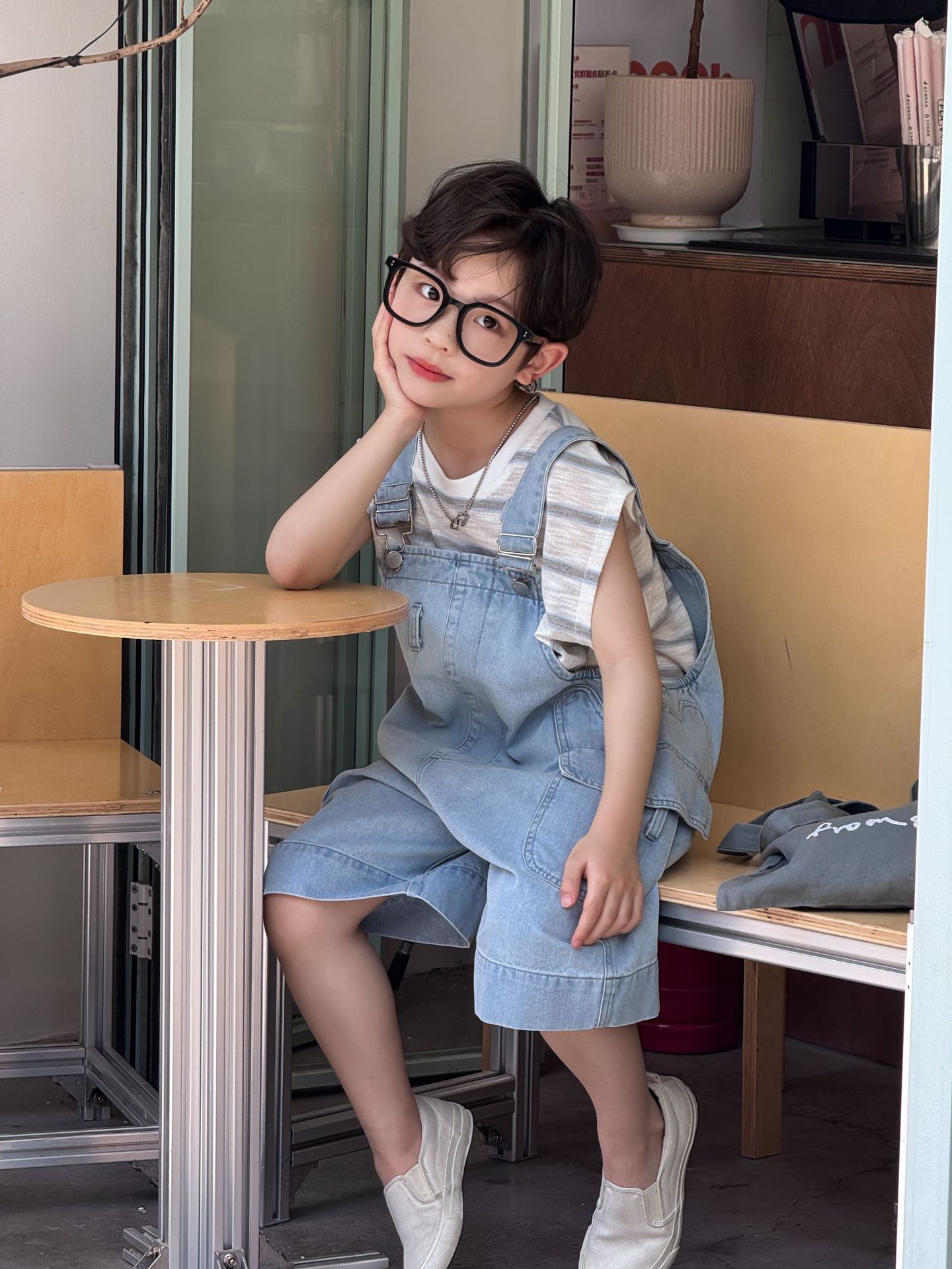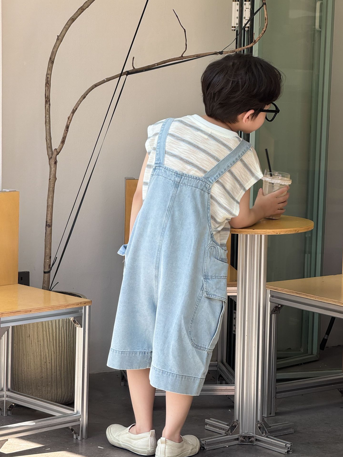 어린이와 소년을위한 25 여름 새 한국 아동복 복고풍 블루 큰 포켓 툴링 데님 멜빵스토어 가기