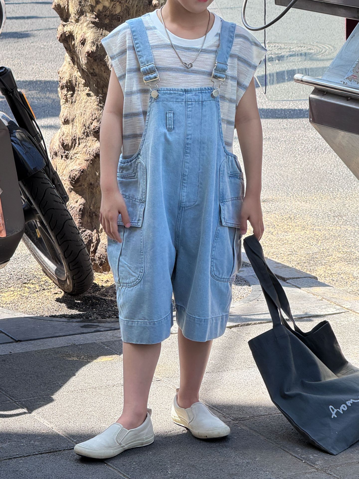 어린이와 소년을위한 25 여름 새 한국 아동복 복고풍 블루 큰 포켓 툴링 데님 멜빵