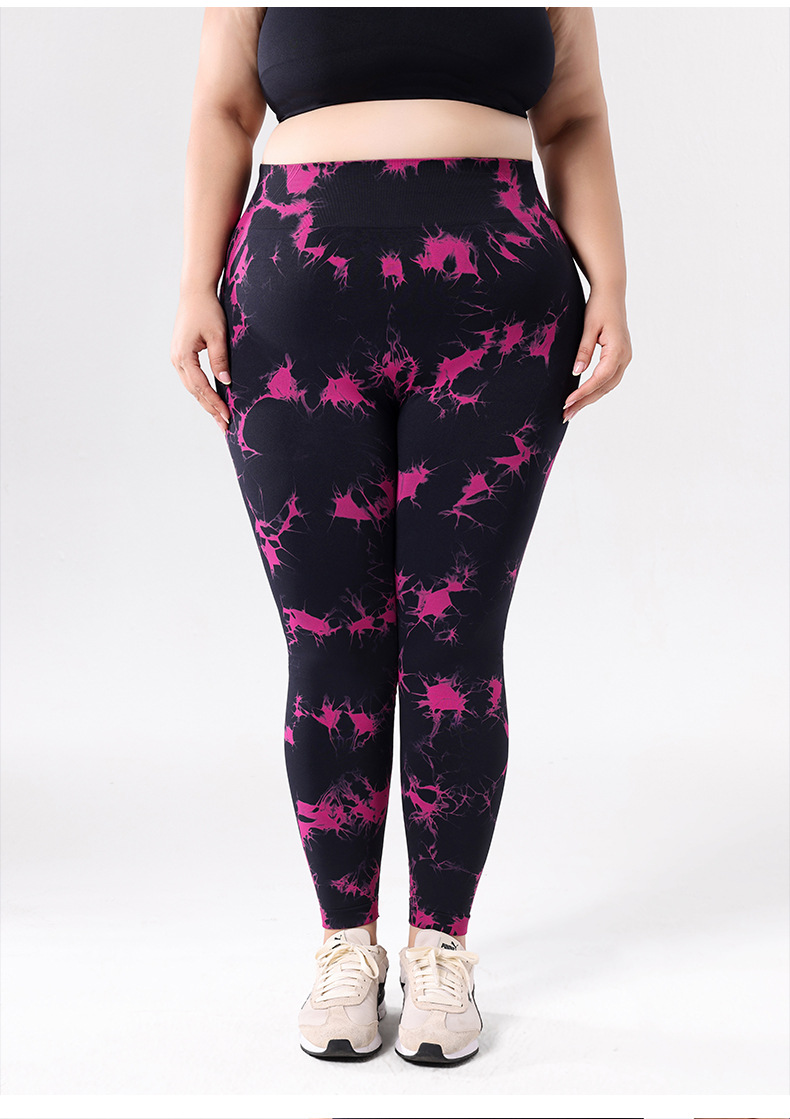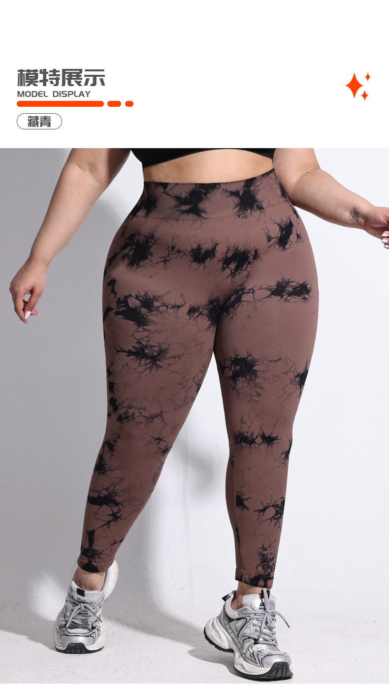 2025 플러스 사이즈 유럽과 미국의 타이 다이 요가 바지 여성의 높은 허리 타이트 스포츠 레깅스 복숭아 엉덩이 달리기 압축 바지스토어 가기