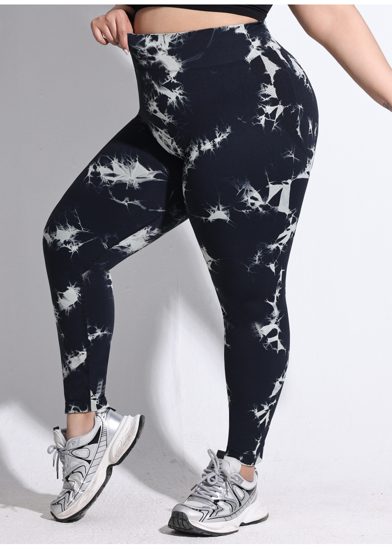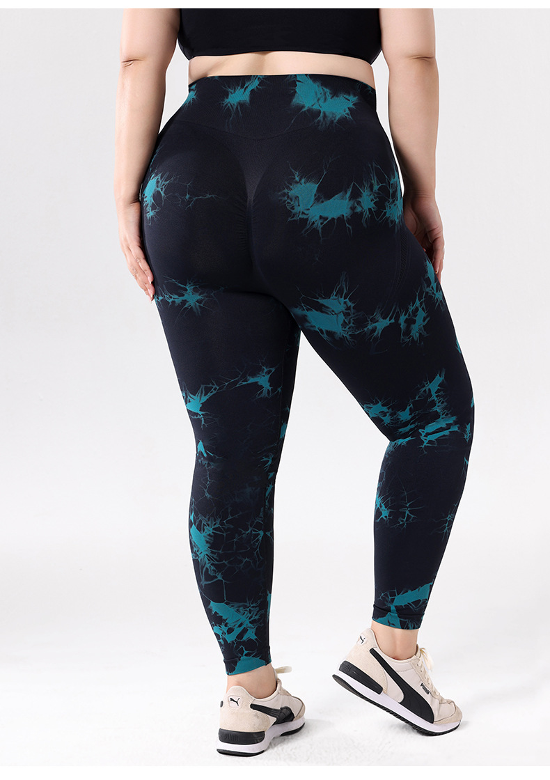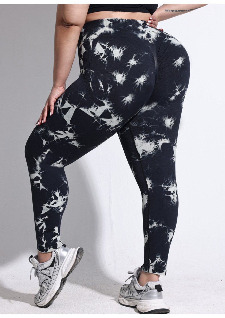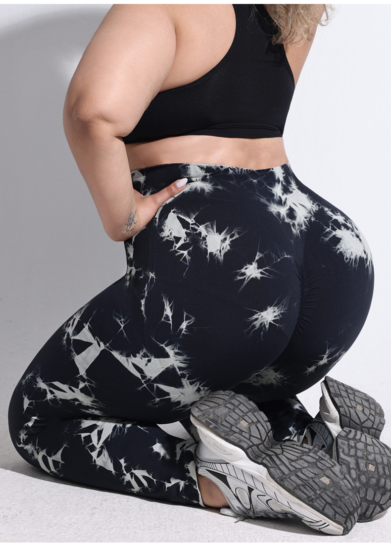 2025 플러스 사이즈 유럽과 미국의 타이 다이 요가 바지 여성의 높은 허리 타이트 스포츠 레깅스 복숭아 엉덩이 달리기 압축 바지