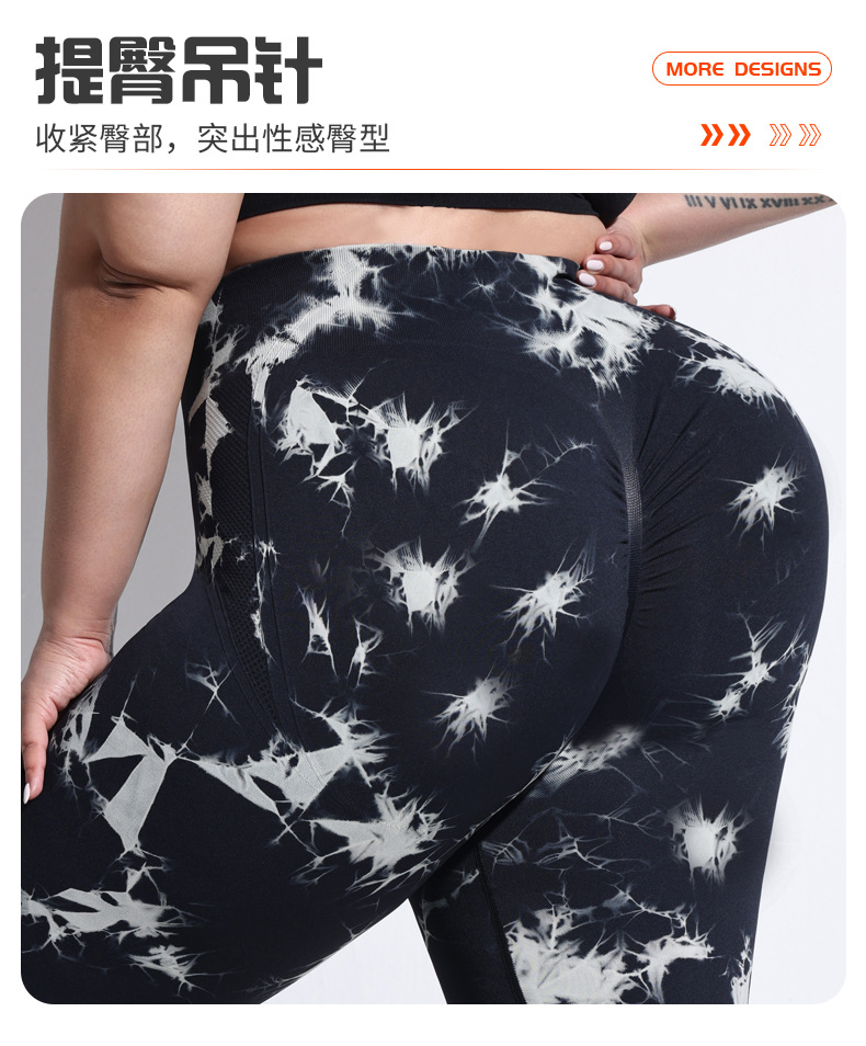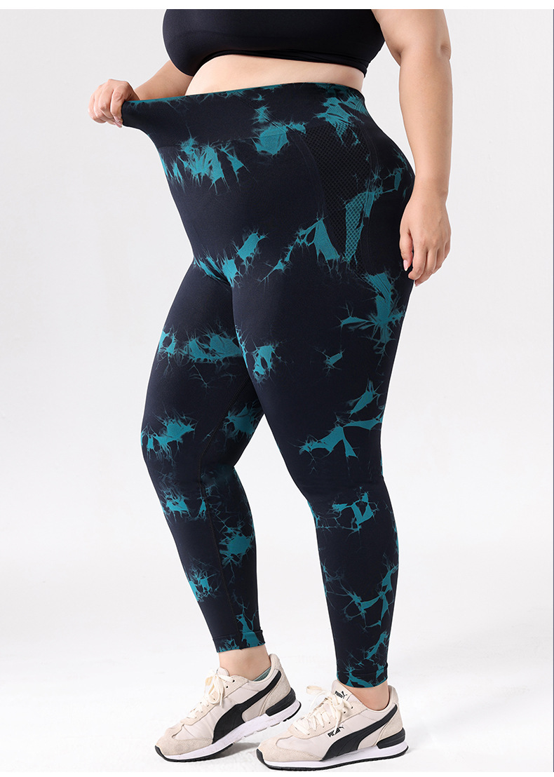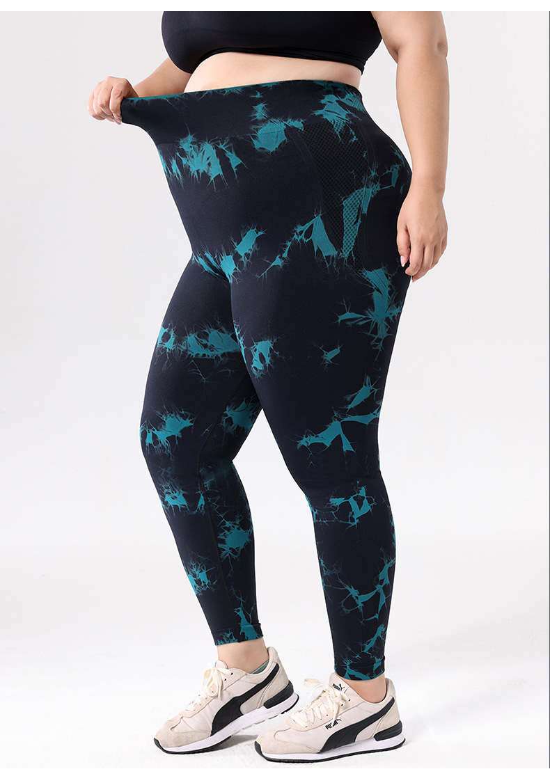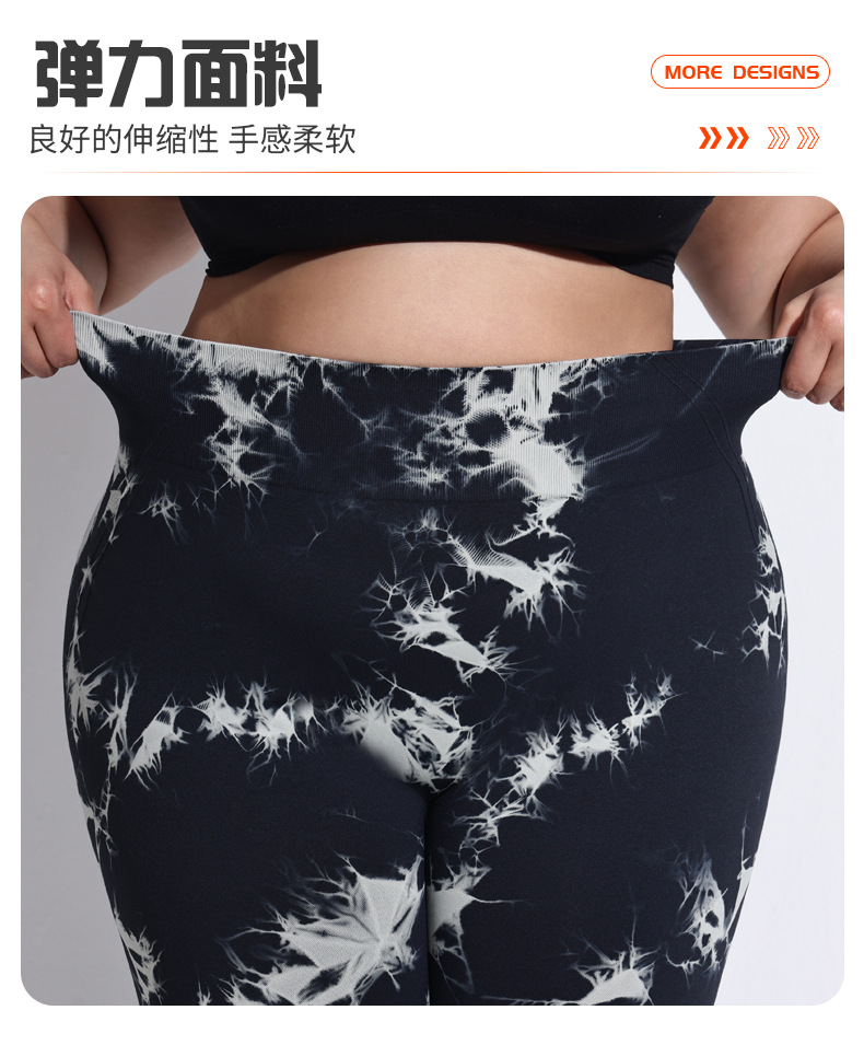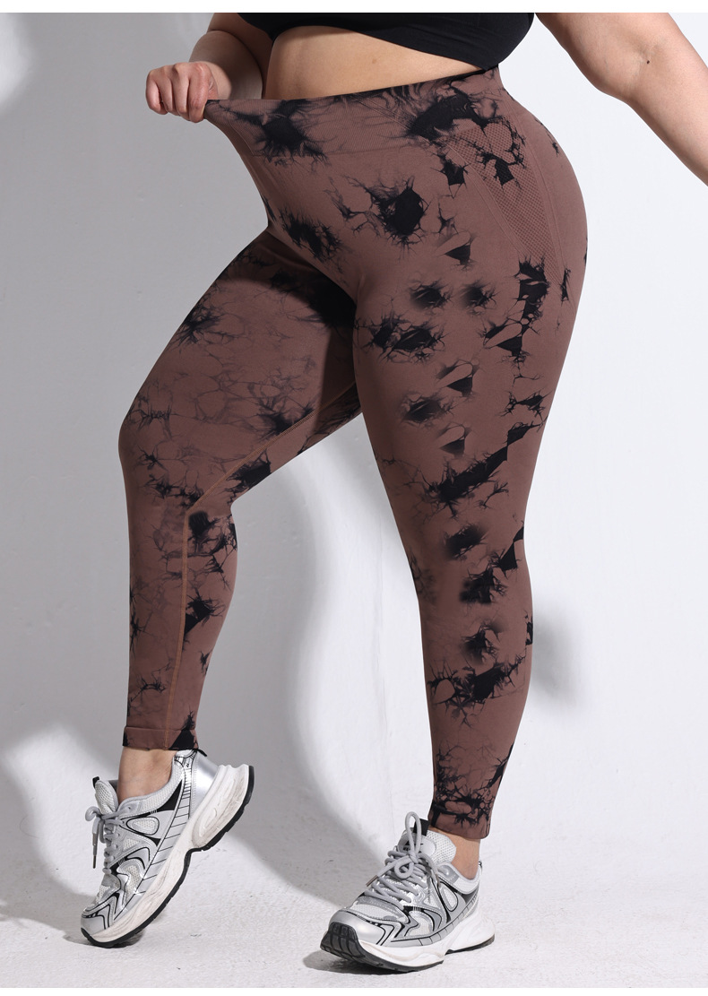 2025 플러스 사이즈 유럽과 미국의 타이 다이 요가 바지 여성의 높은 허리 타이트 스포츠 레깅스 복숭아 엉덩이 달리기 압축 바지