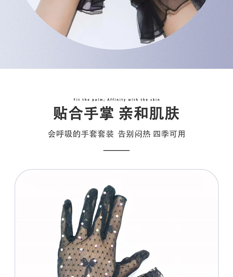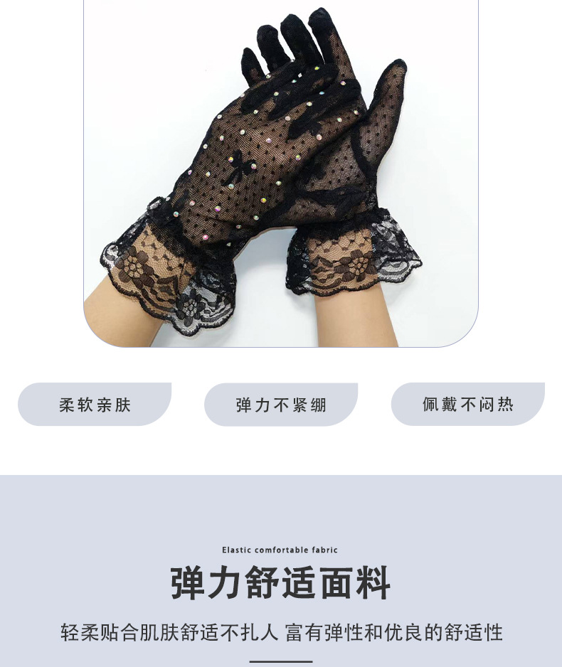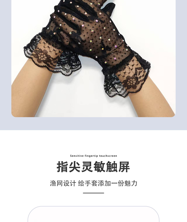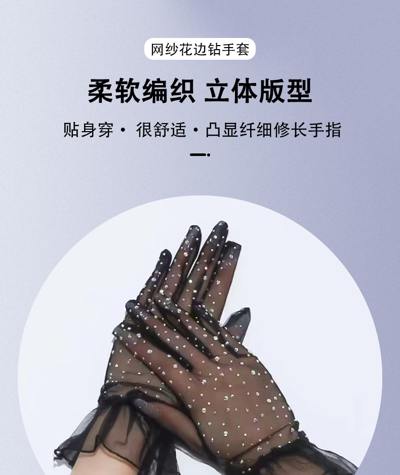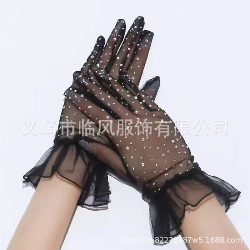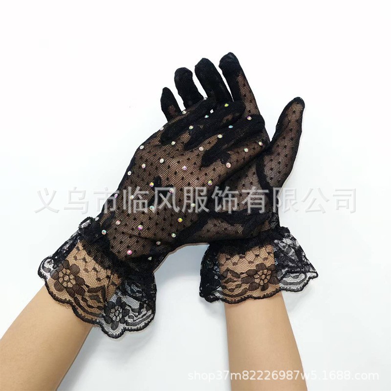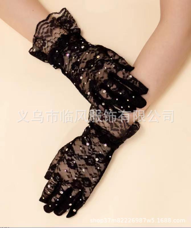 [소스 제조업체] 메쉬 레이스 다이아몬드 스팽글 스커트 다섯 손가락 장갑 복고풍 패션 성인 레이스 꽃 여름
