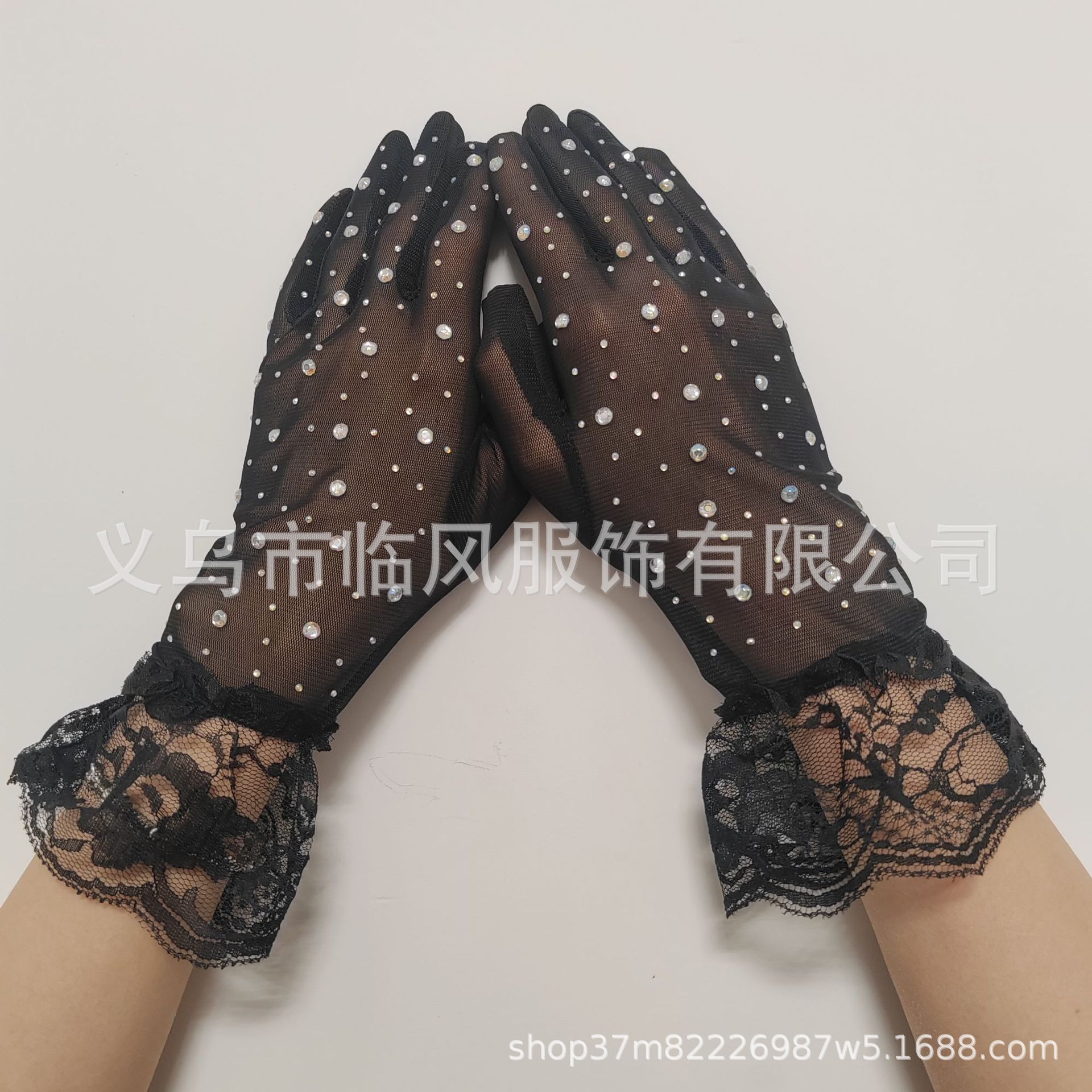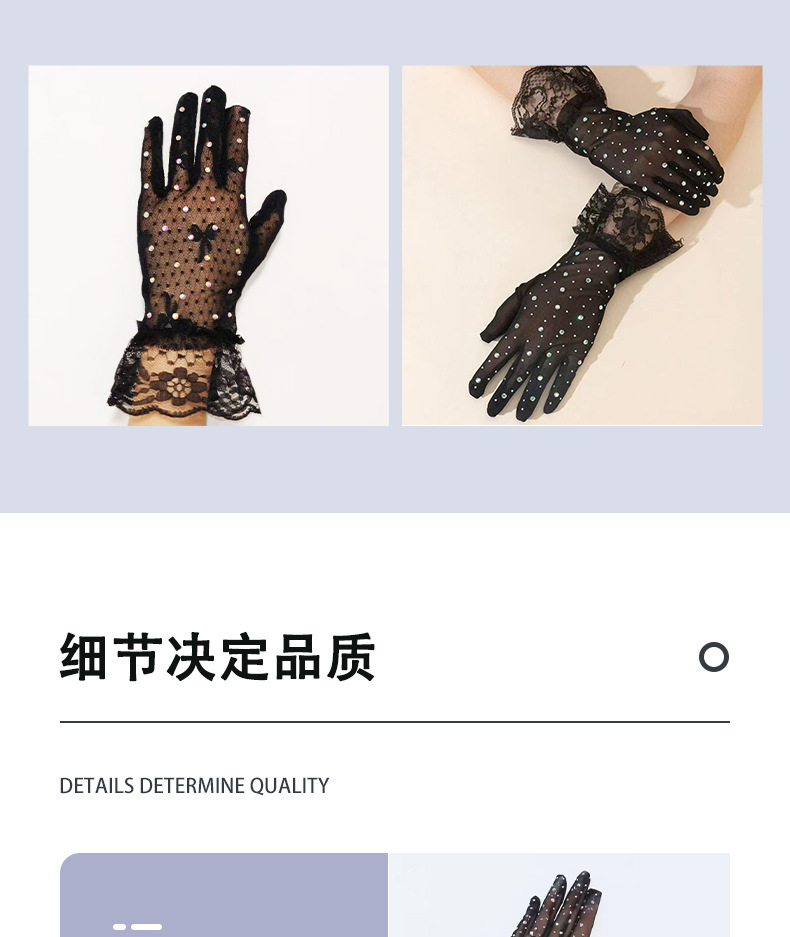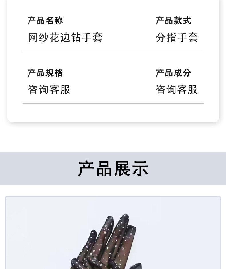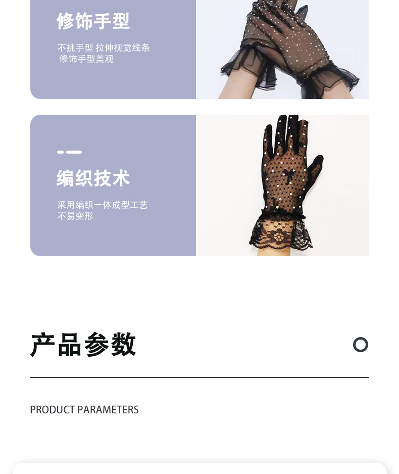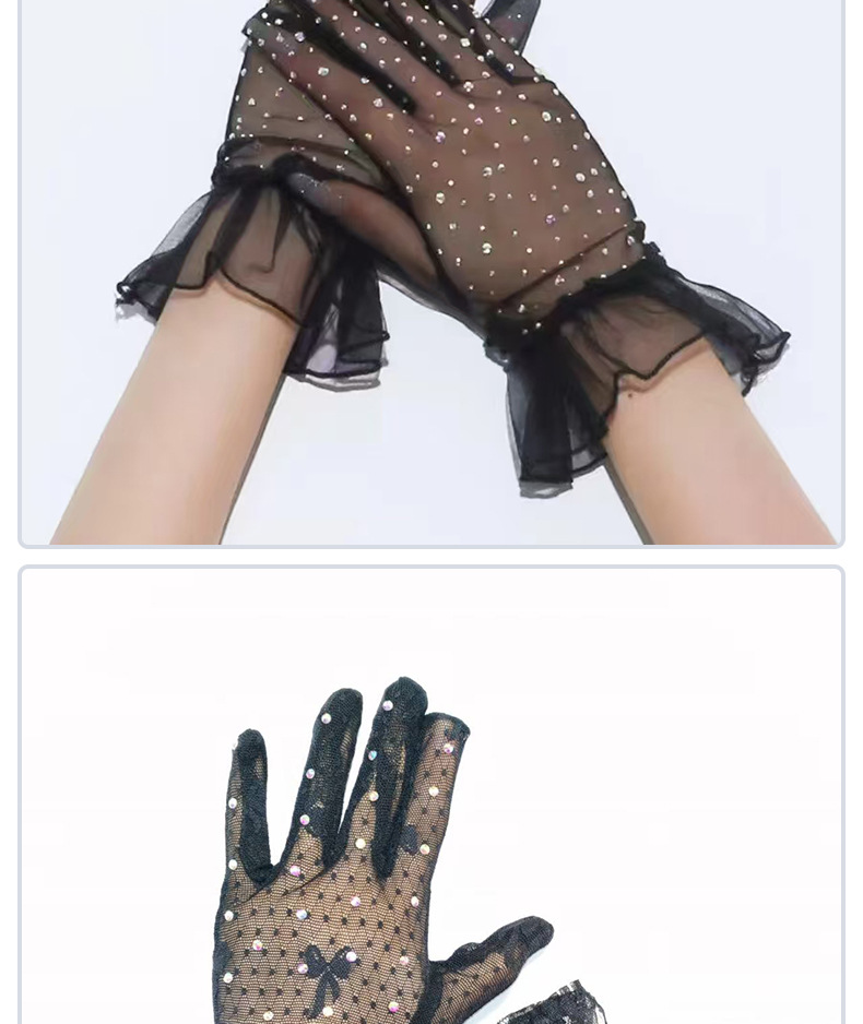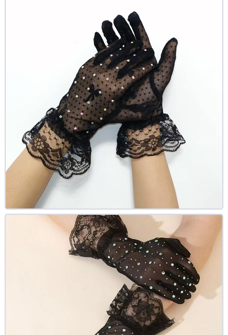[소스 제조업체] 메쉬 레이스 다이아몬드 스팽글 스커트 다섯 손가락 장갑 복고풍 패션 성인 레이스 꽃 여름