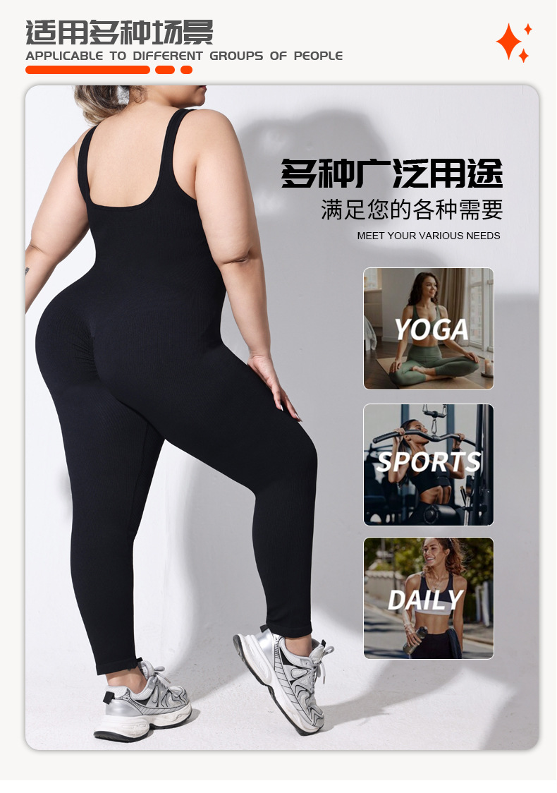 여성용 플러스 사이즈 백리스 두꺼운 실 원피스 팬츠, 고정식 더블 숄더 스트랩, 스포츠 바디 쉐이핑 점프수트, 심리스 힙 리프팅 요가복스토어 가기