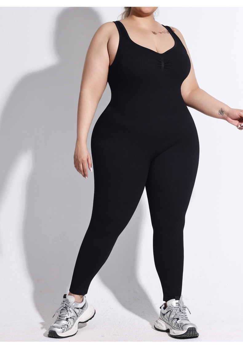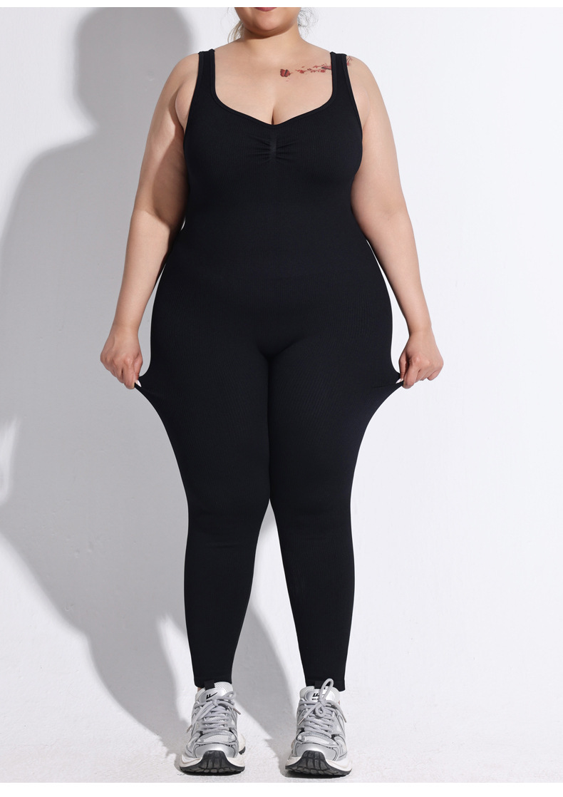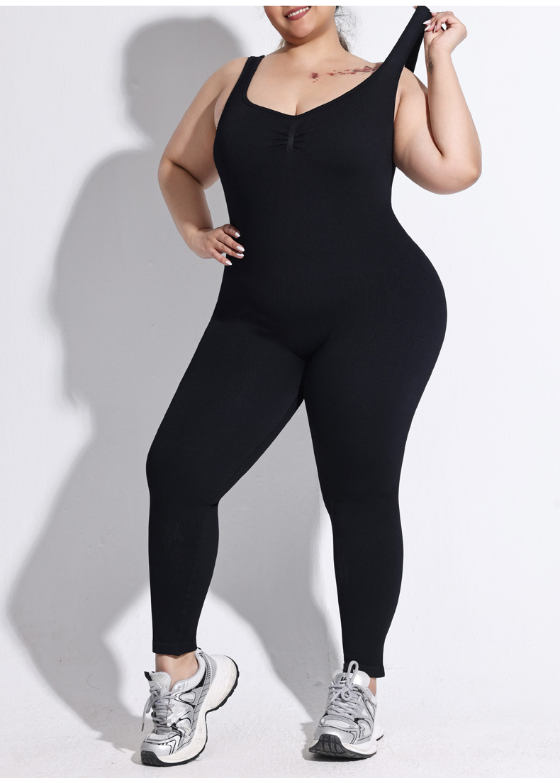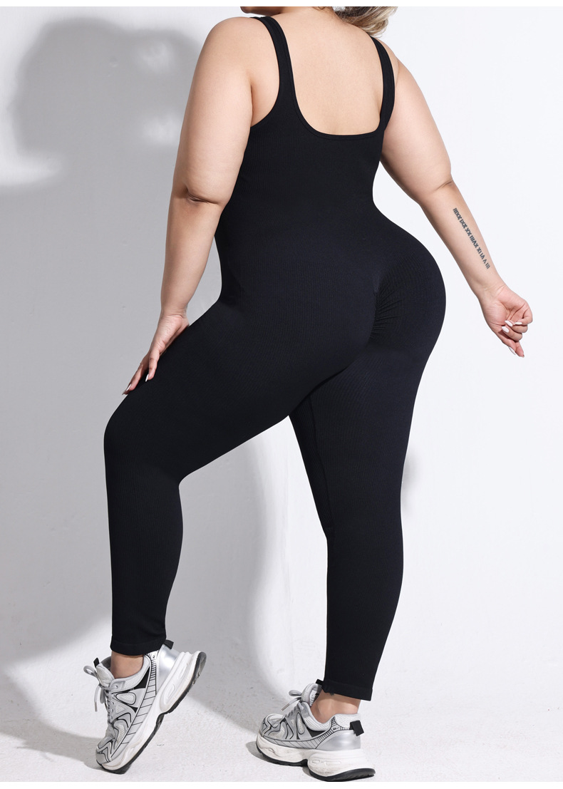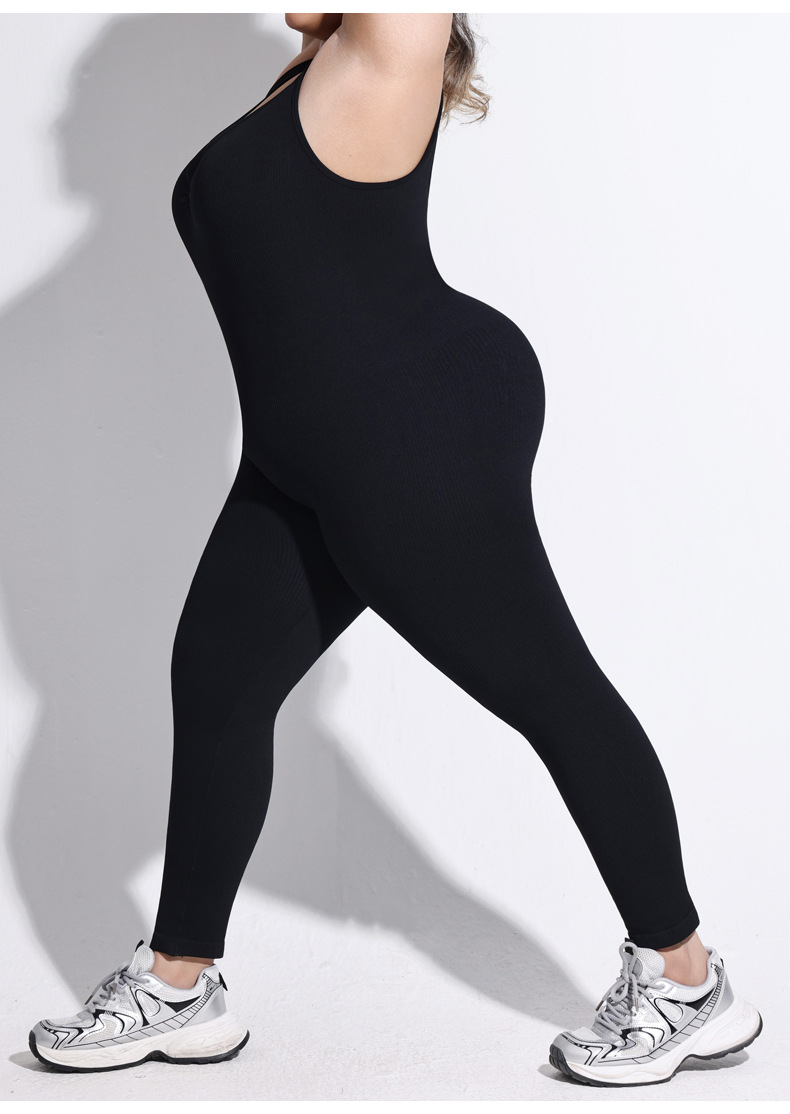 여성용 플러스 사이즈 백리스 두꺼운 실 원피스 팬츠, 고정식 더블 숄더 스트랩, 스포츠 바디 쉐이핑 점프수트, 심리스 힙 리프팅 요가복