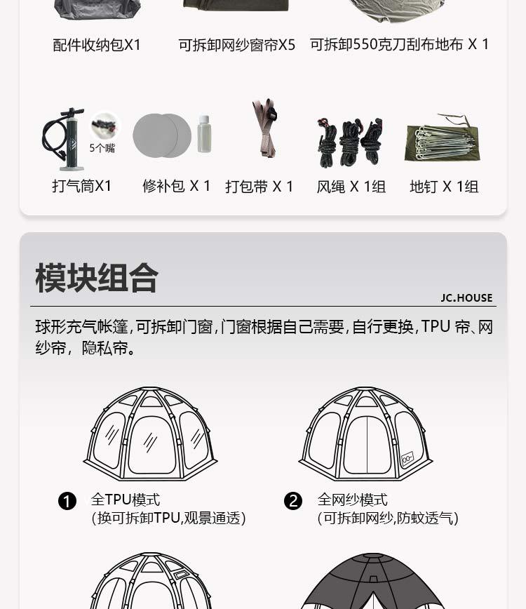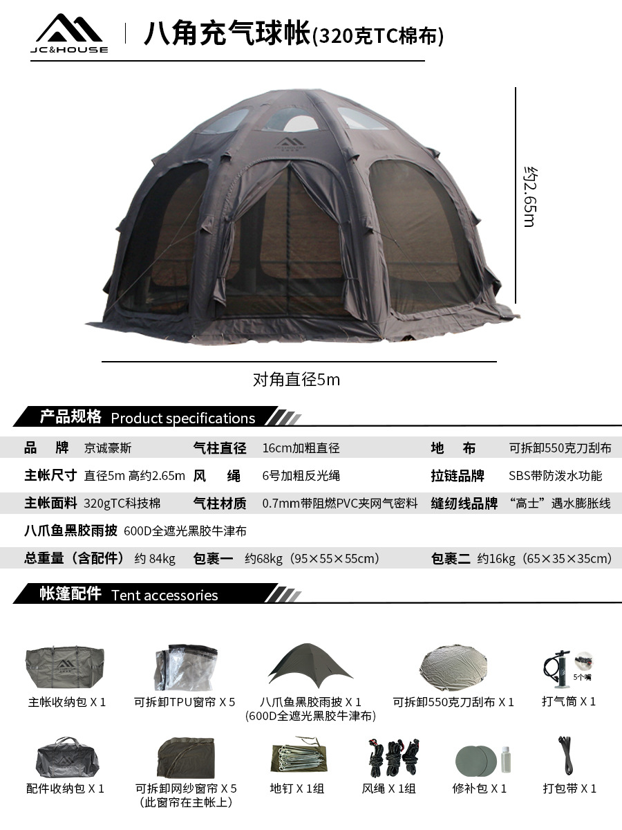 Jingcheng Haos JcHouse 320g 면 팔각형 구형 풍선 텐트 캠핑 캠프 돔 풍선 텐트