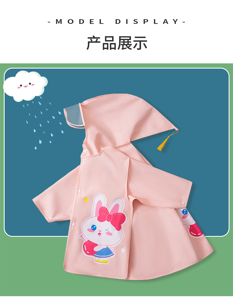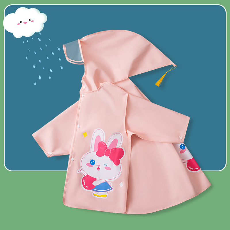 • 귀여운 핑크색 토끼 비옷 [특대형 책가방 + 큰 챙 + 큰 주머니]