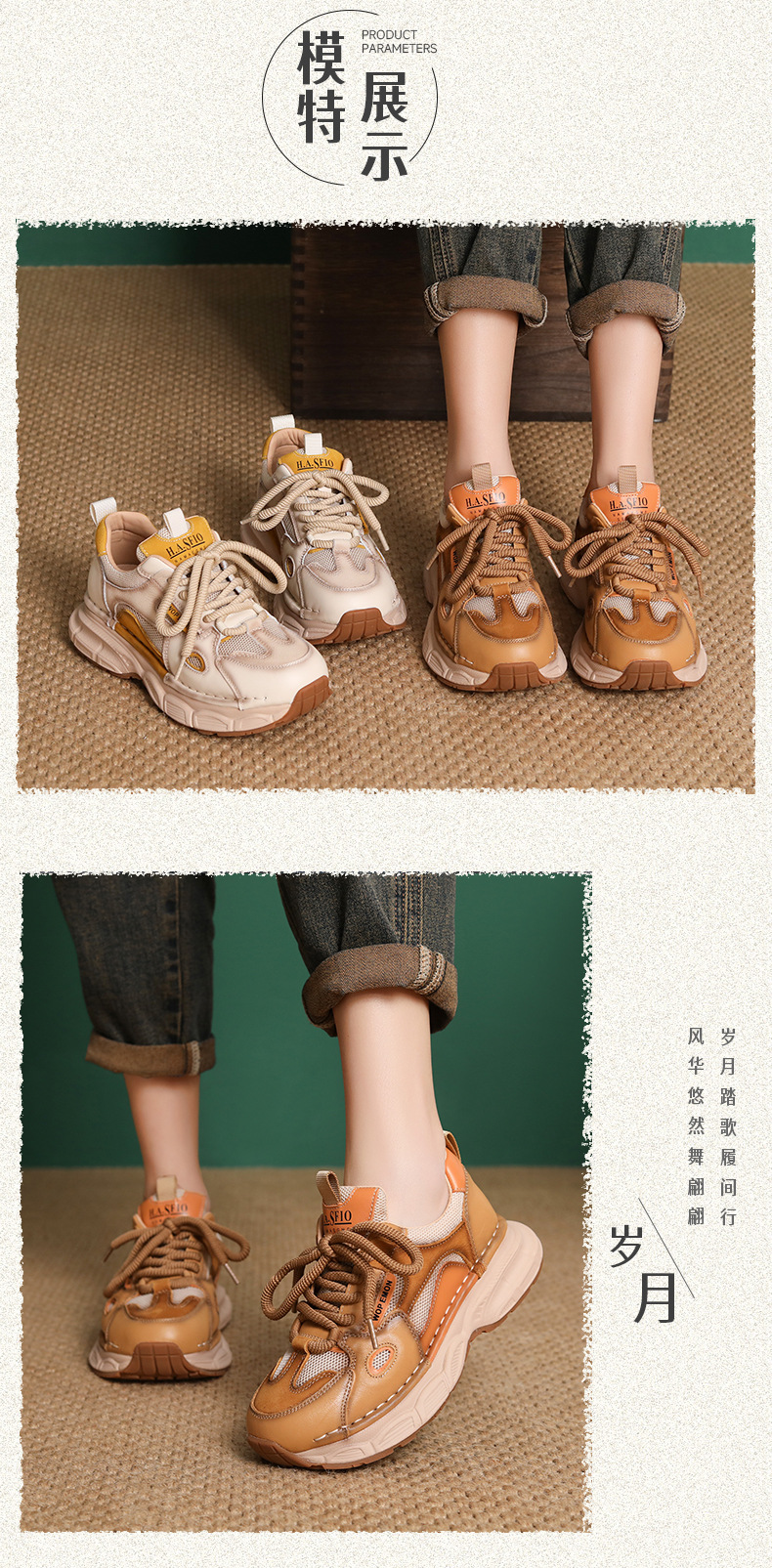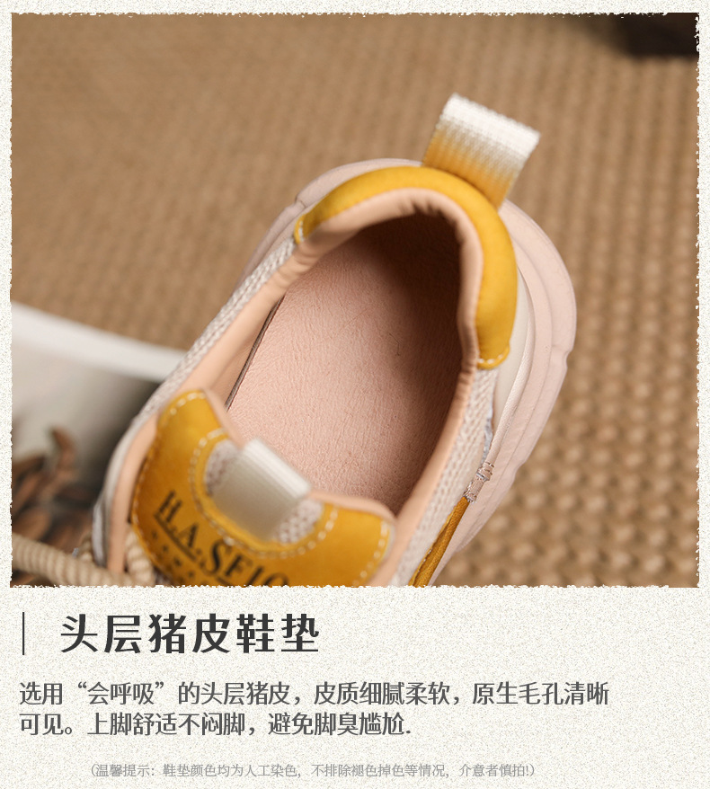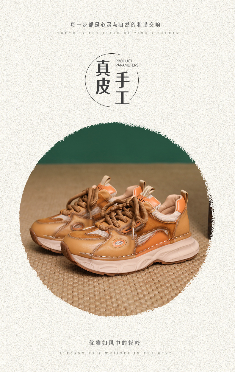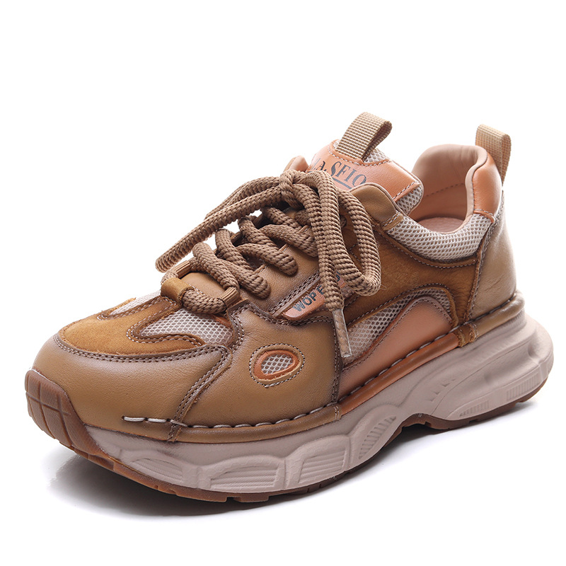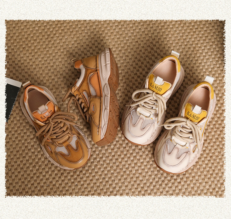 첫 번째 레이어 소 가죽 컬러 블록 통기성 메쉬 신발 여성의 봄과 여름 2025 새로운 두꺼운 밑창 부드러운 밑창 다목적 캐주얼 여성 신발스토어 가기
