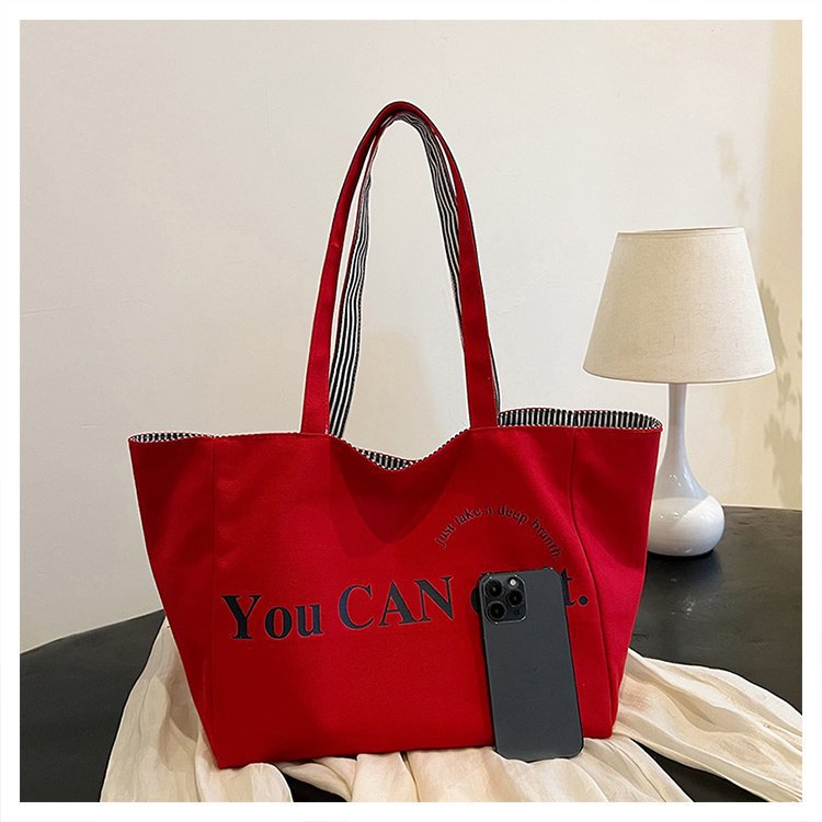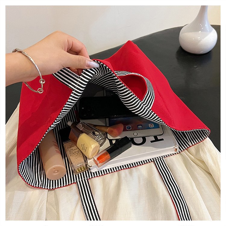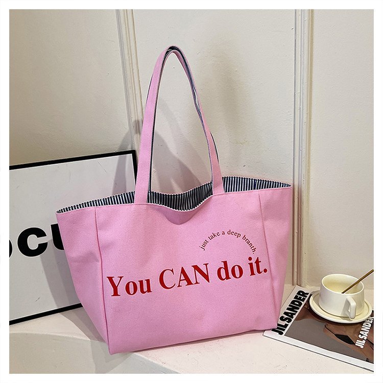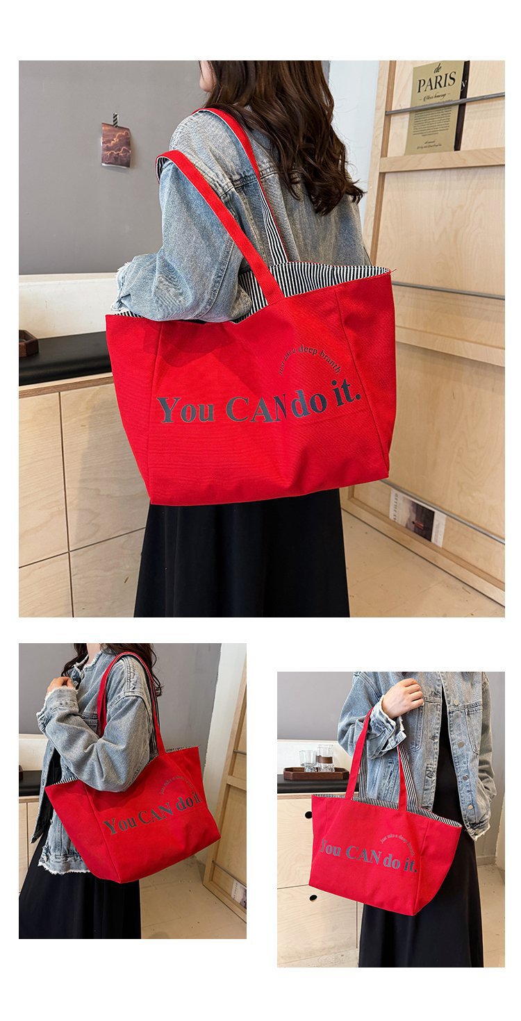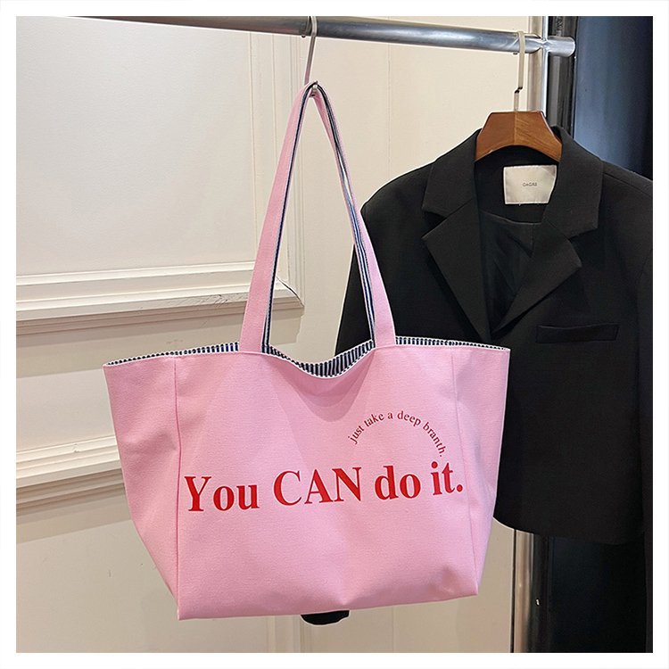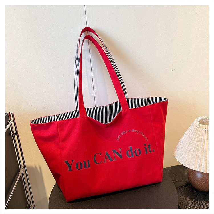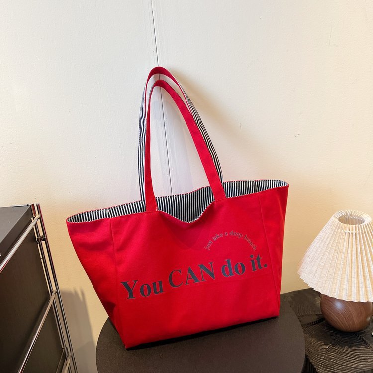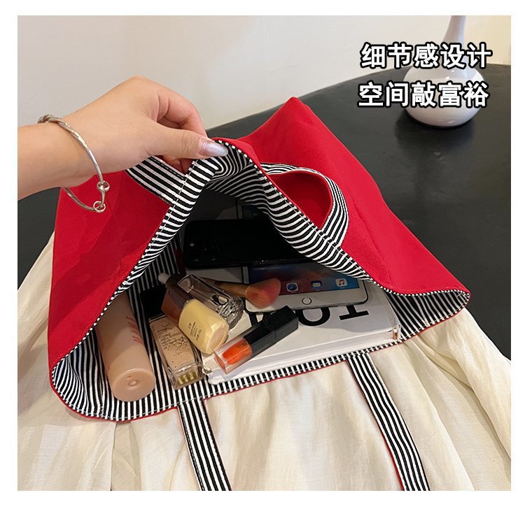 한국 대용량 토트 양면 새로운 줄무늬 캐주얼 원 숄더 질감 자수 캔버스 가방 학생 통근