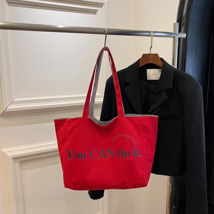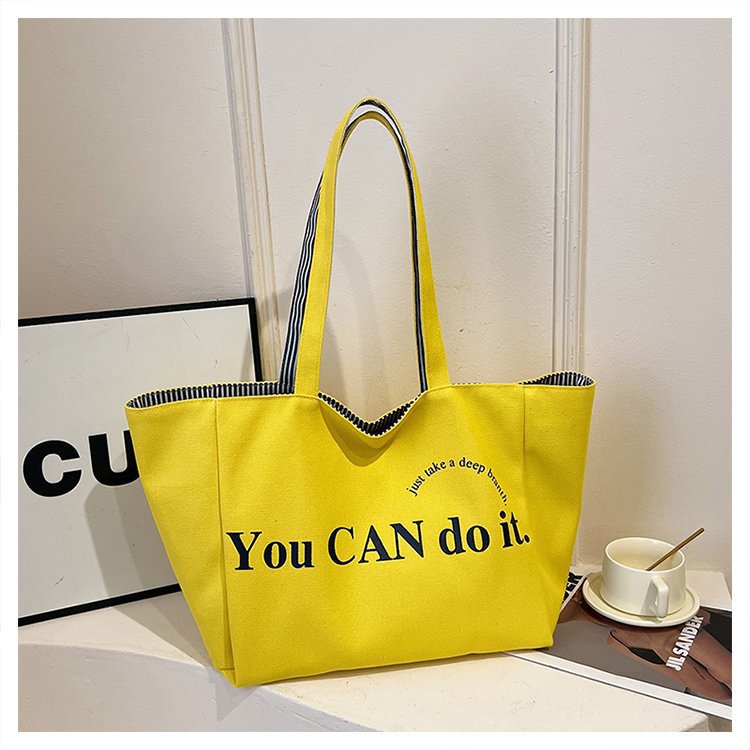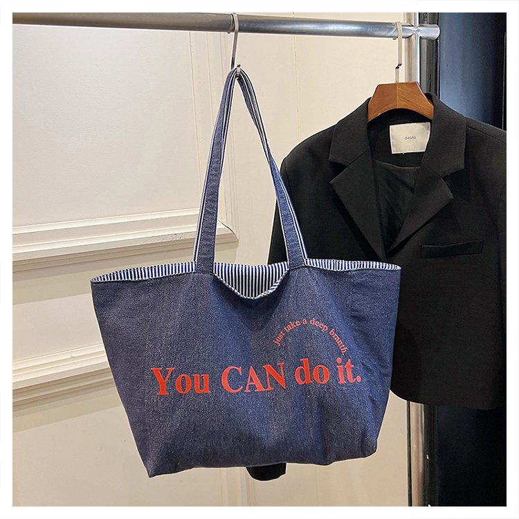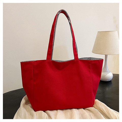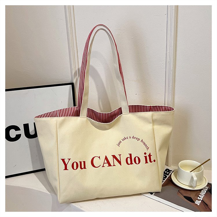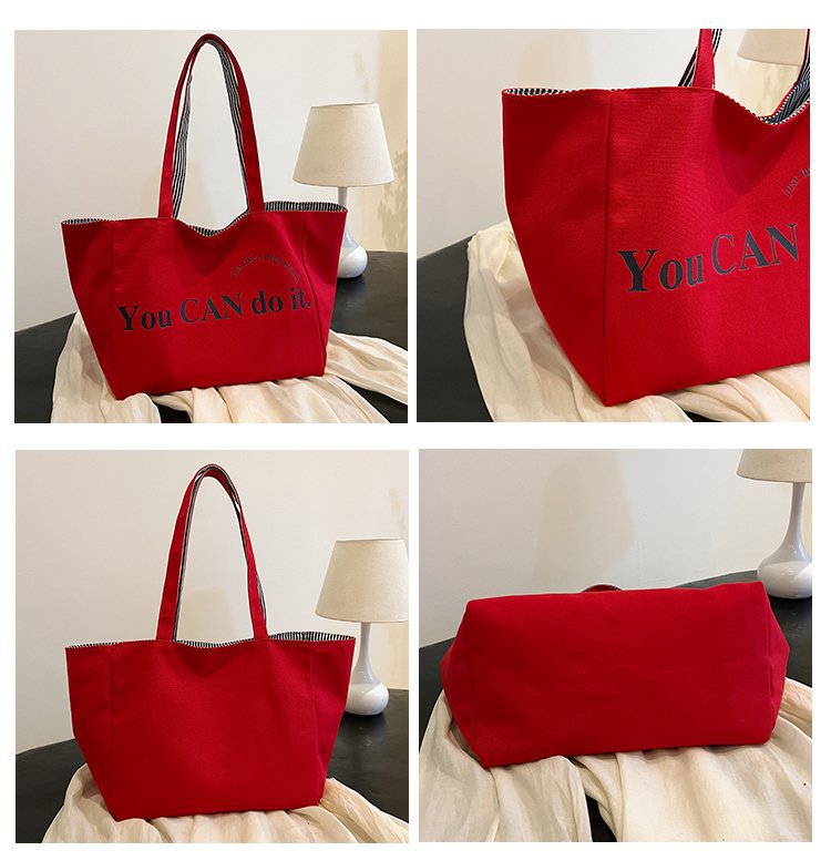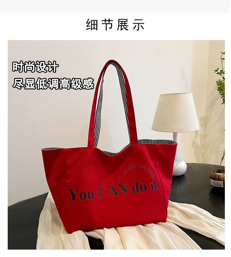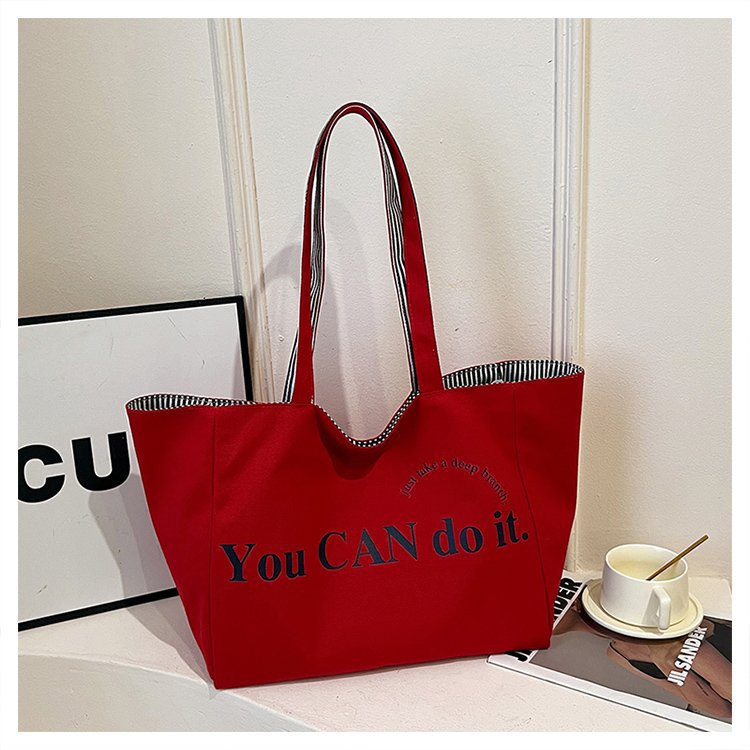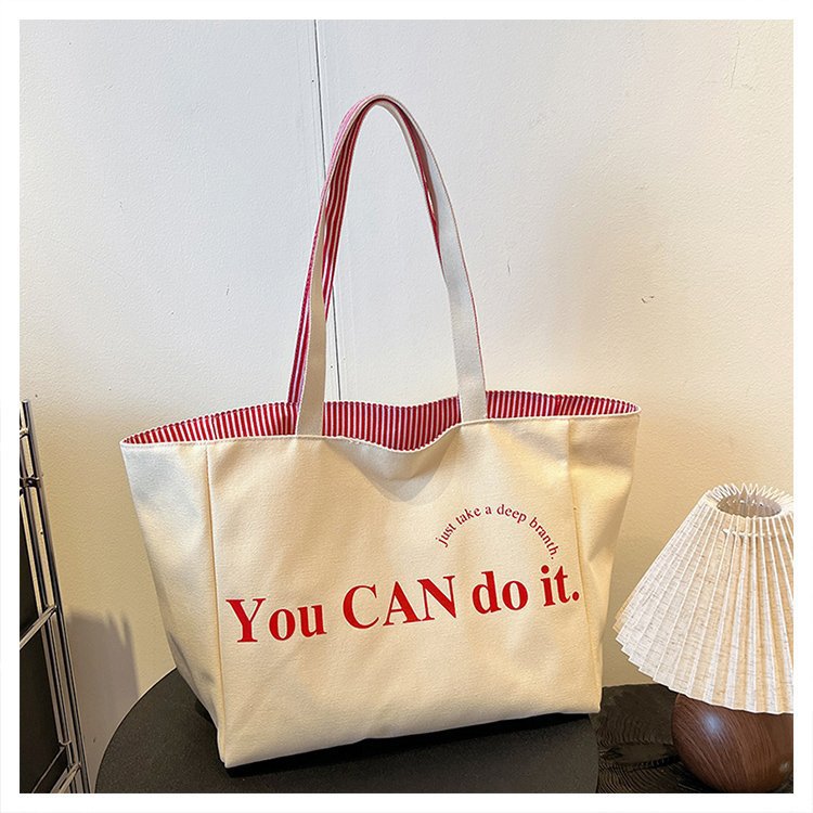 한국 대용량 토트 양면 새로운 줄무늬 캐주얼 원 숄더 질감 자수 캔버스 가방 학생 통근