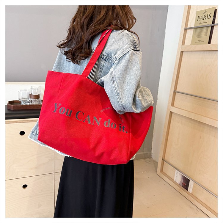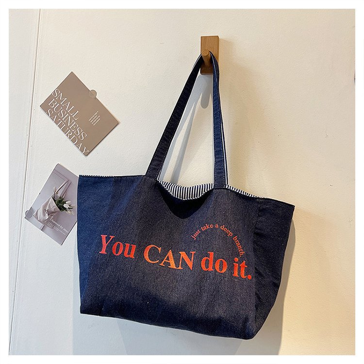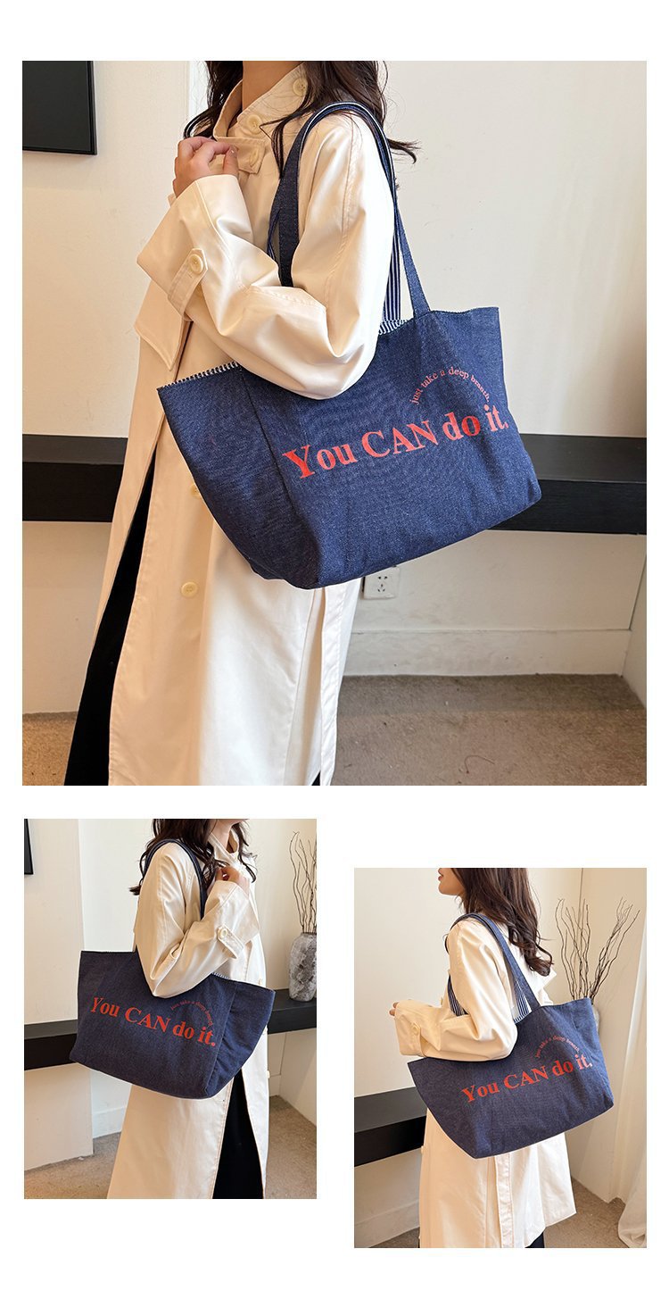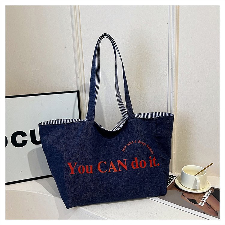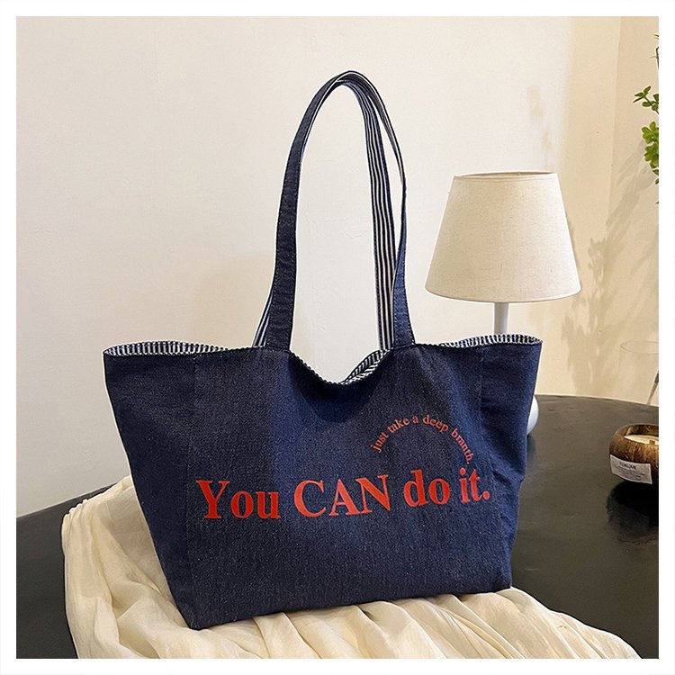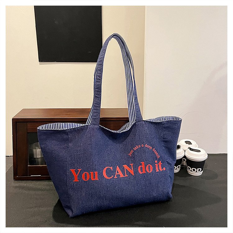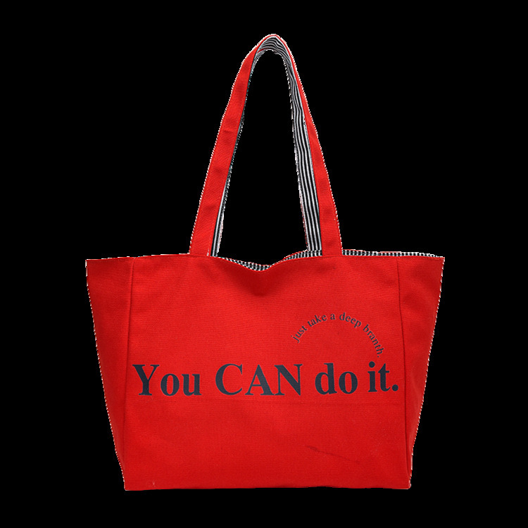 한국 대용량 토트 양면 새로운 줄무늬 캐주얼 원 숄더 질감 자수 캔버스 가방 학생 통근