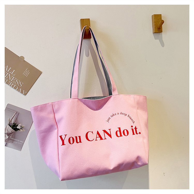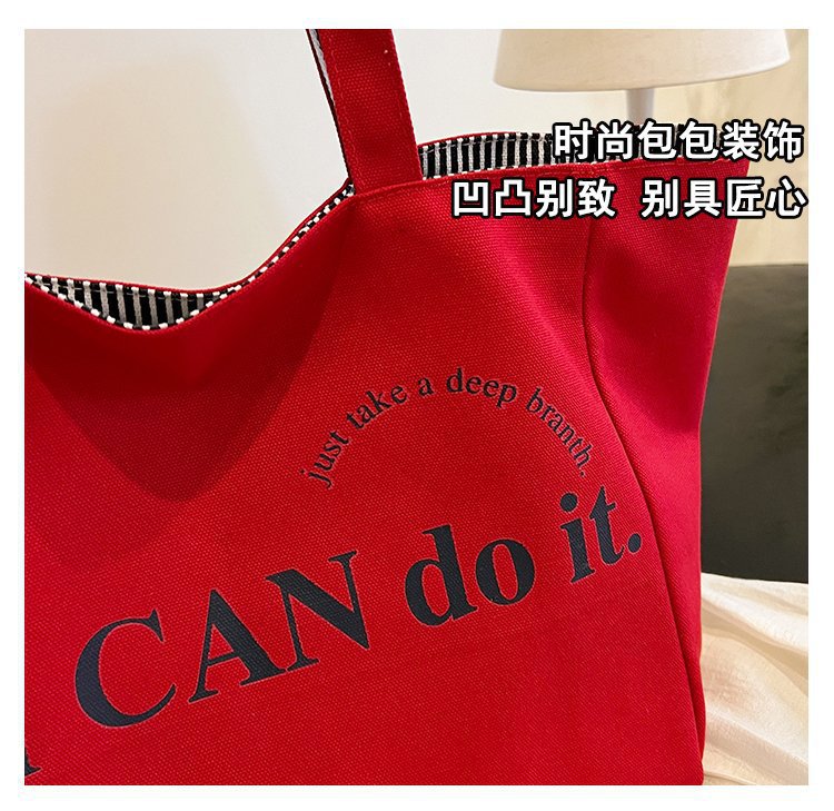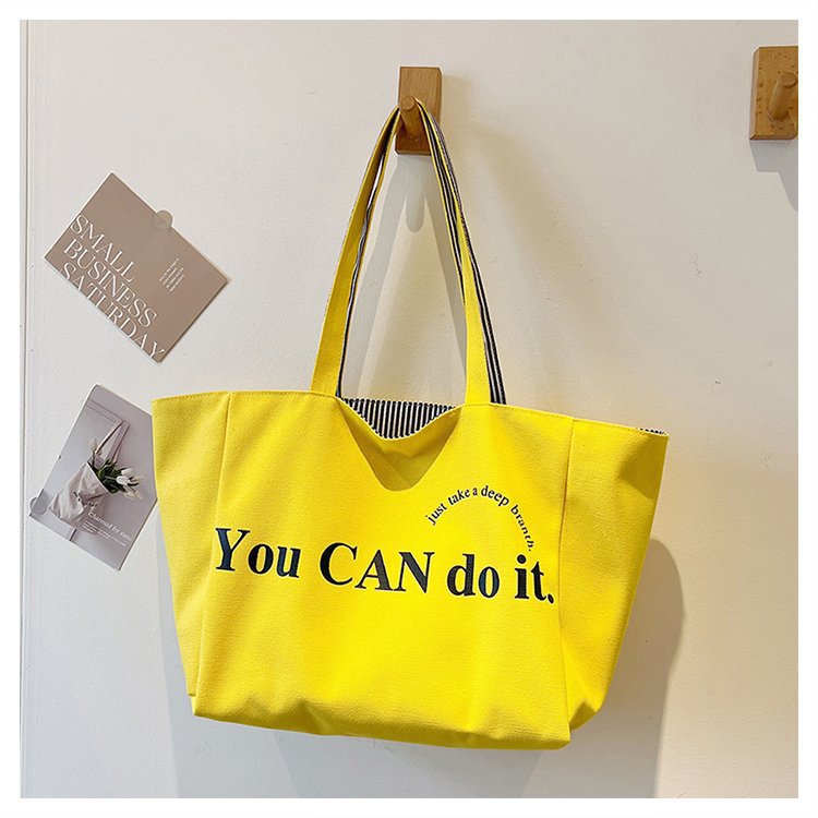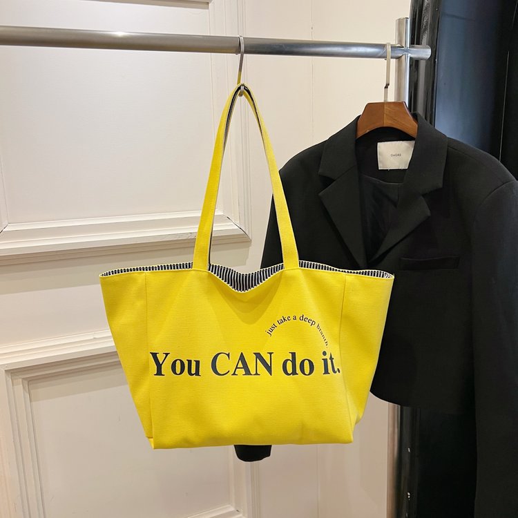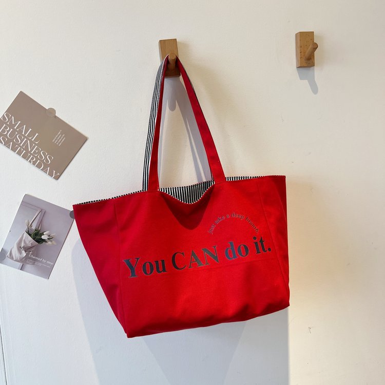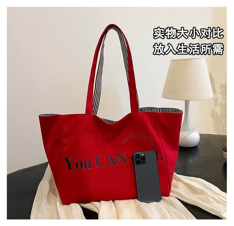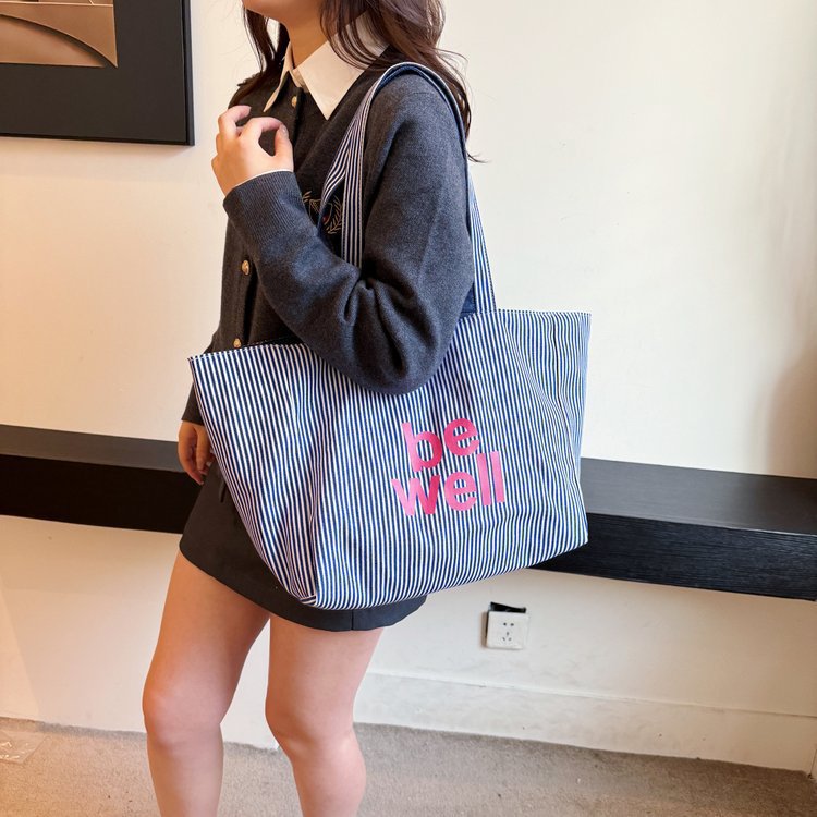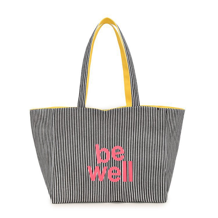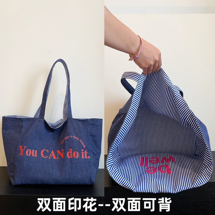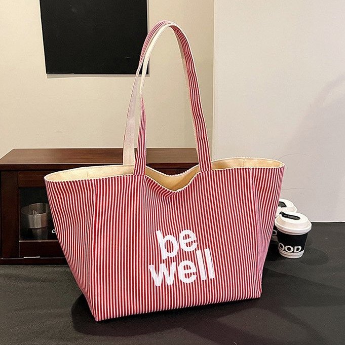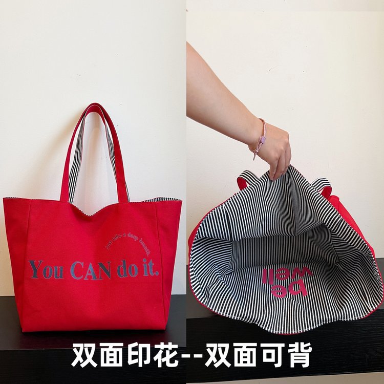 한국 대용량 토트 양면 새로운 줄무늬 캐주얼 원 숄더 질감 자수 캔버스 가방 학생 통근스토어 가기