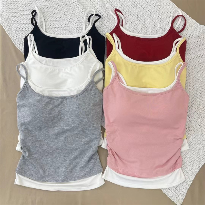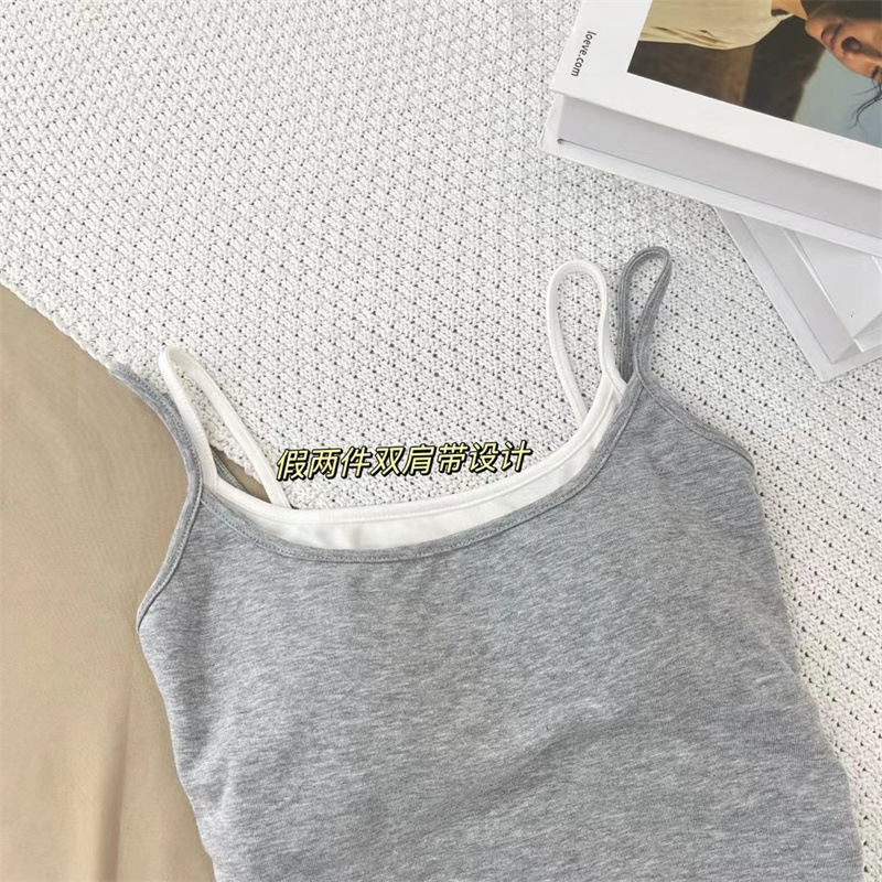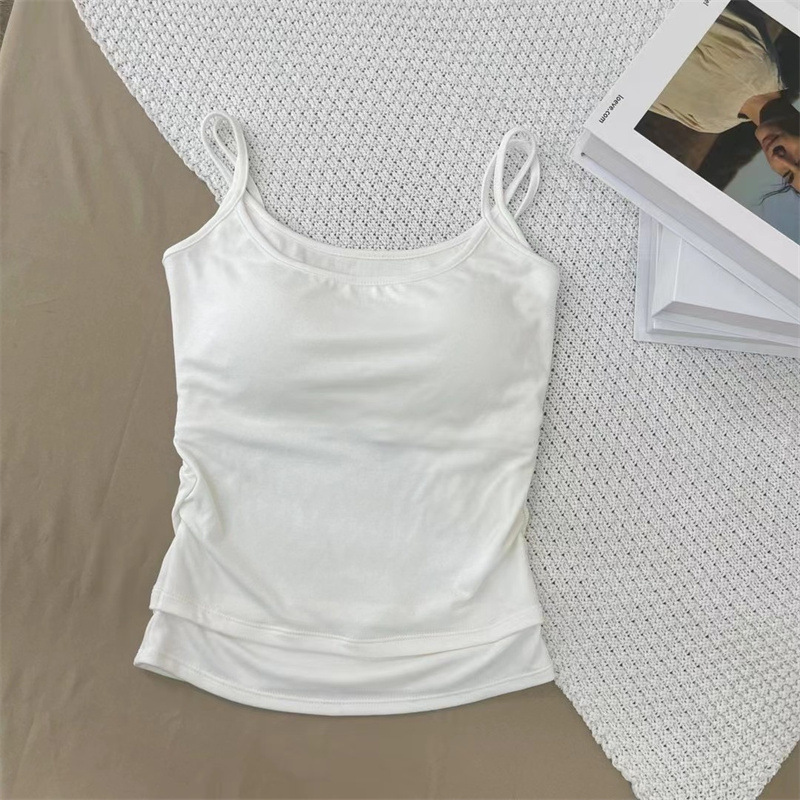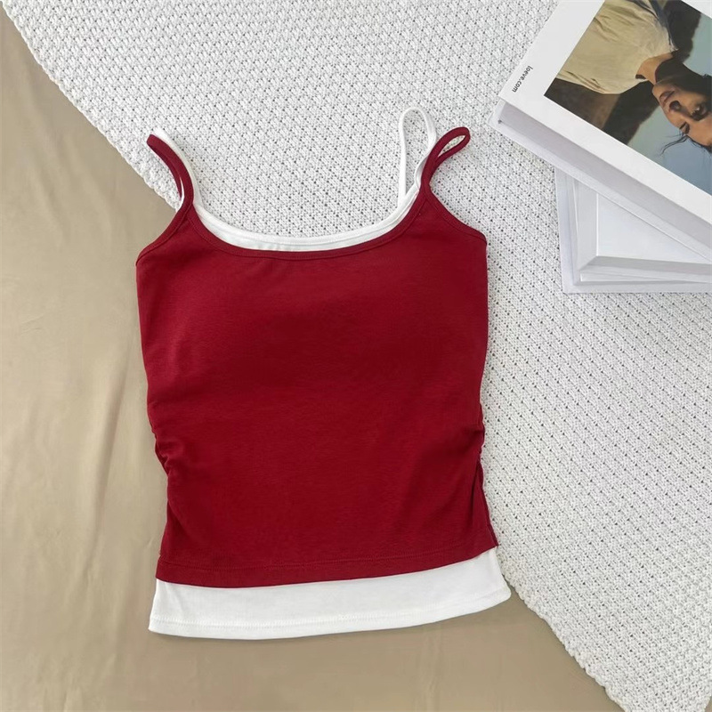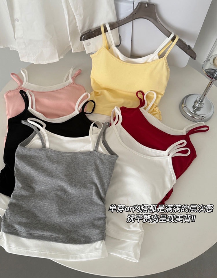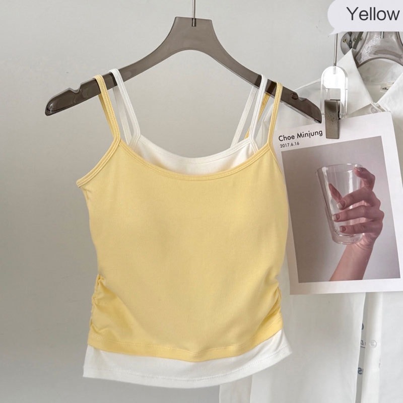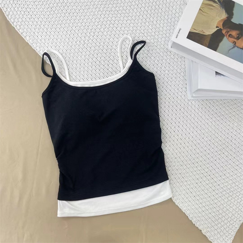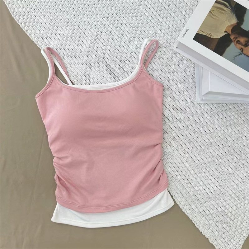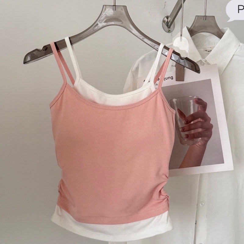 한국식 아름 다운 백 달콤한 퓨어 포즈 투피스 카미솔 여성 디자인 센스 아우터 입고 흉부 패드로 주름 받은 안쪽 탑