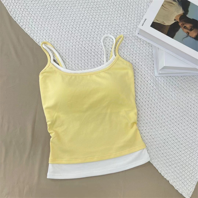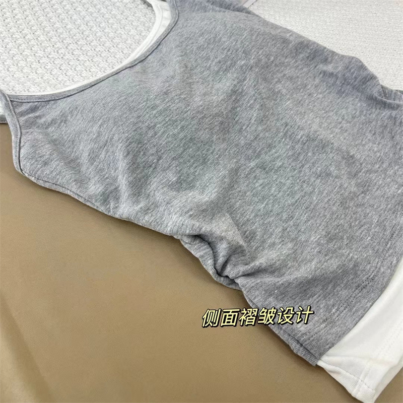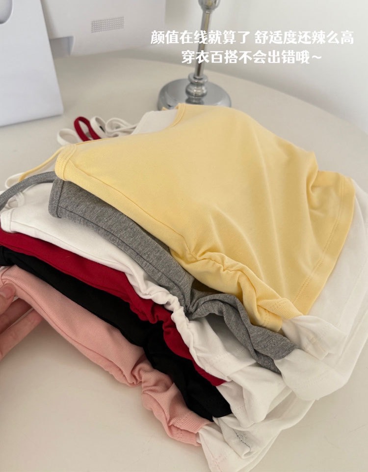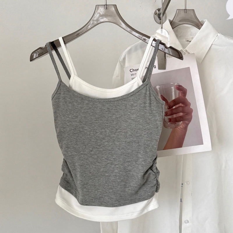 한국식 아름 다운 백 달콤한 퓨어 포즈 투피스 카미솔 여성 디자인 센스 아우터 입고 흉부 패드로 주름 받은 안쪽 탑스토어 가기