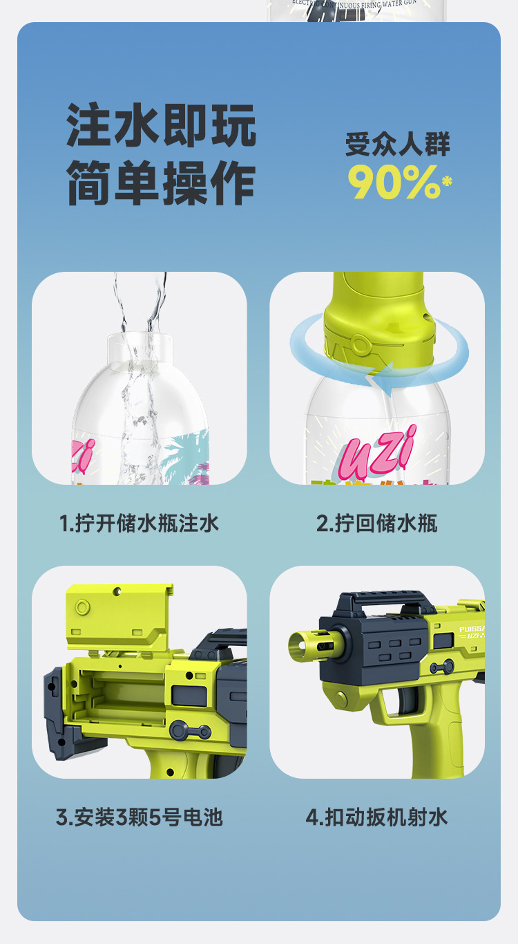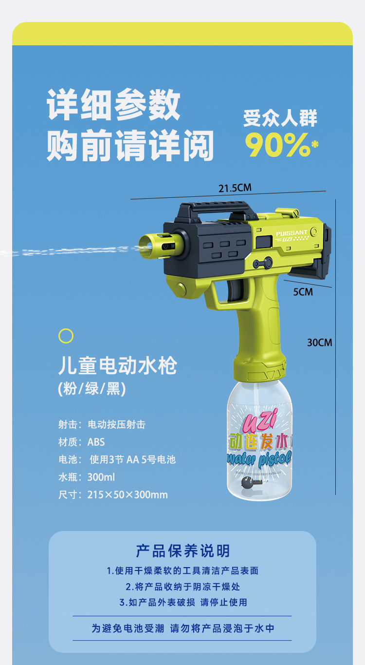 국경 간 하이 엔드 완전 자동 전기 물 총 여름 해변 물 놀이 대용량 풀 zi 워터 건 전기 uzi스토어 가기
