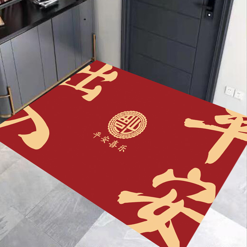안전한 크리스탈 벨벳 바닥 매트, 입구 빨간색 축제 발 매트, 미끄럼 방지 및 내마모성 새해 입구 바닥 매트